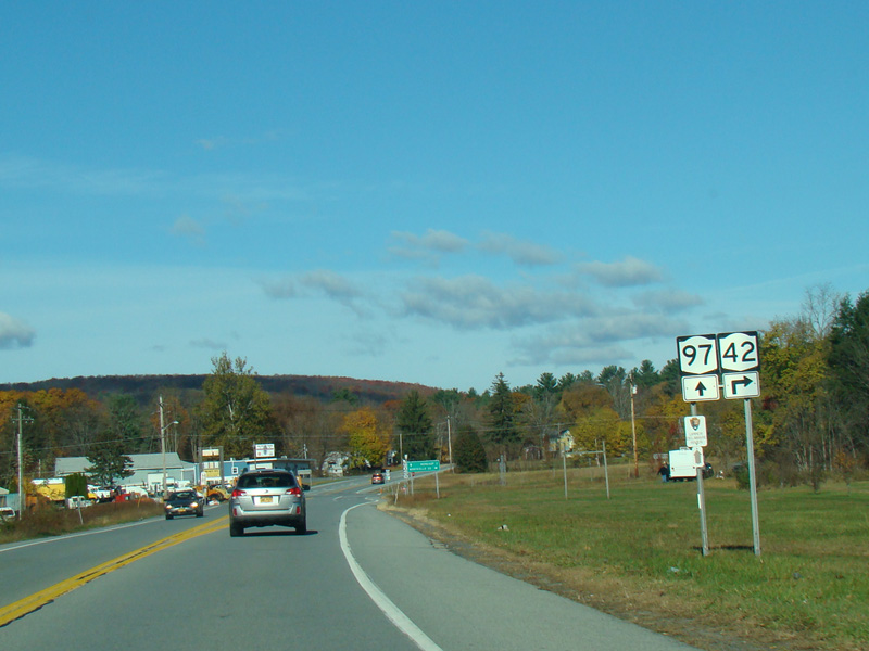 NY 42 splits off to the right here. Continue straight ahead to stay on NY 97.