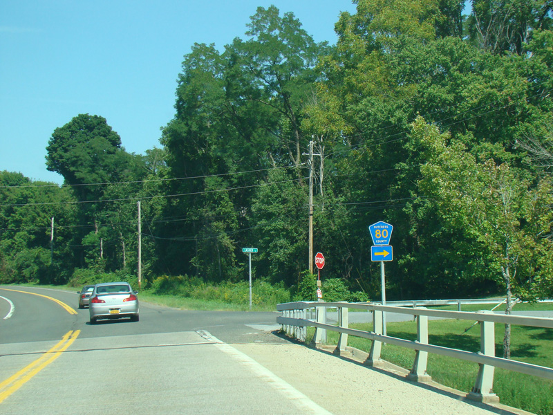 There is a flasher at CR 78. Turn right onto West Kerley Corners Road to go east or left onto Broadway to go west.