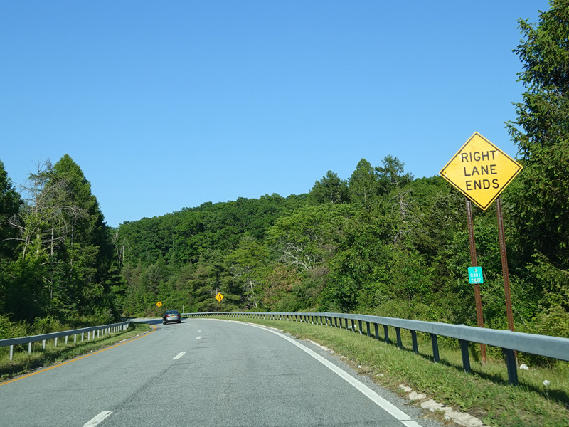 US 6 becomes a divided highway. It passes over the New York Thruway (I-87), but there is no interchange. It then goes up a mountain.
