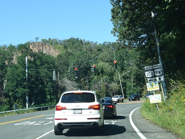 US 9W is an alternative to US 9 running along the west side of the Hudson River. It begins at US 1/US 9 in Fort Lee, NJ, and runs north, crossing into New York after just over eleven miles. It continues north, parallel to the New York Thruway (I-87), to Albany, where it ends at Clinton Avenue (US 9). US 9W goes through a number of different names in the various towns through which it passes. It has no name in many of the rural areas between major towns. Most of US 9W is a two-lane undivided road, although some portions are wider. The section passing through Highland Falls, Storm King Mountain, and Cornwall is a limited-access highway.
