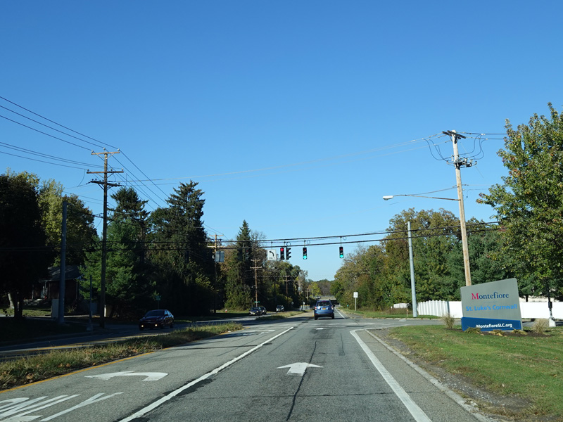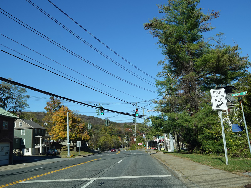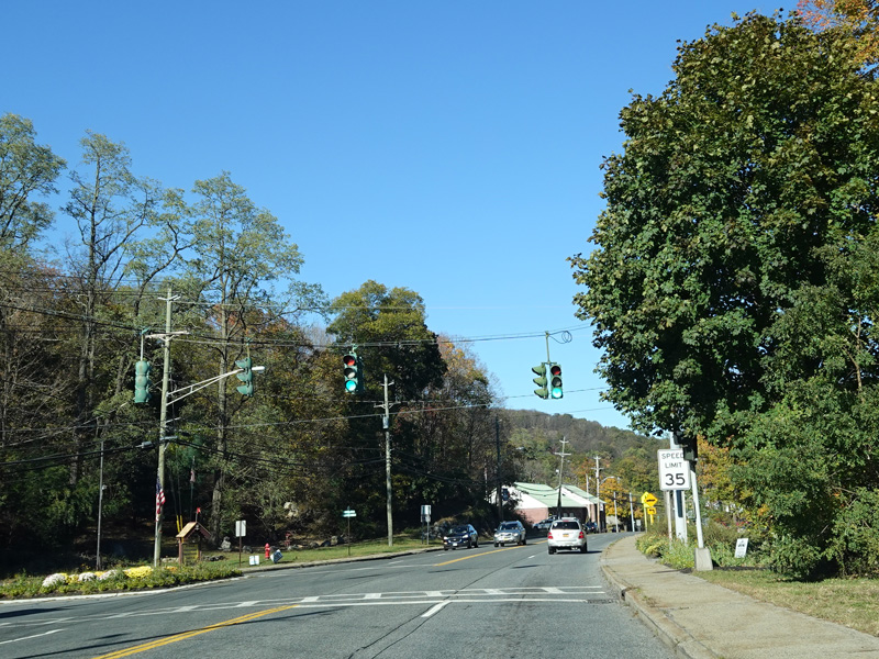US 9W narrows down to two lanes. There is a traffic light at Laurel Avenue.