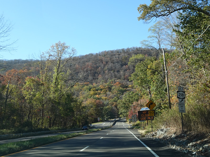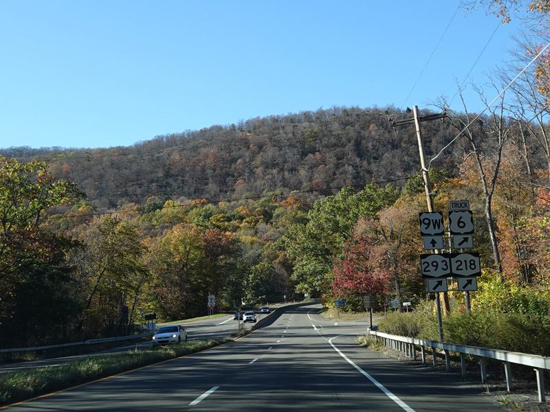 There is an exit for the Storm King Highway (NY 218) and NY 293. NY 218 splits off from US 9W here.