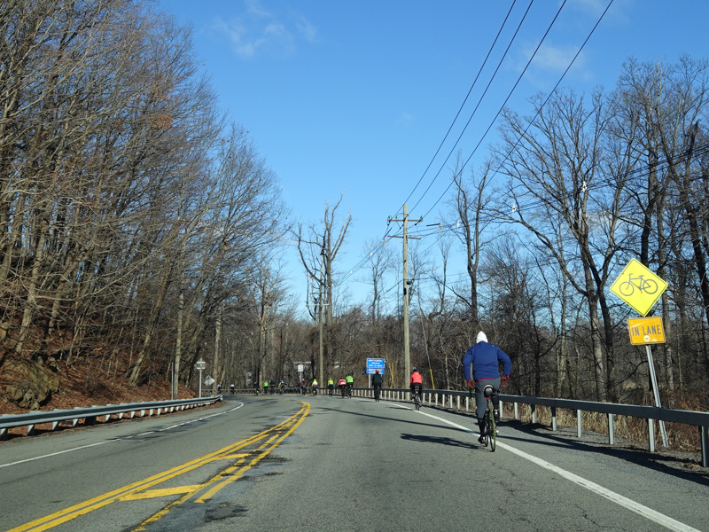 There is a traffic light at Lake Road (CR 80). Turn right to go east into Rockland Lake State Park. Turn left to go west.
