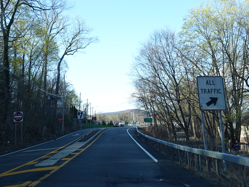On the other side of the bridge, South Liberty Drive ends at a traffic light at CR 108. Turn right onto East Main Street to go east or left onto West Main Street to go west. Continue straight ahead onto North Liberty Drive to stay on US 9W/US 202.