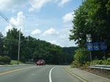 Welcome to New York, Rockland County, and the Town of Orangetown! US 9W runs north through Palisades as a two-lane undivided road. There is a traffic light at Oak Tree Road.