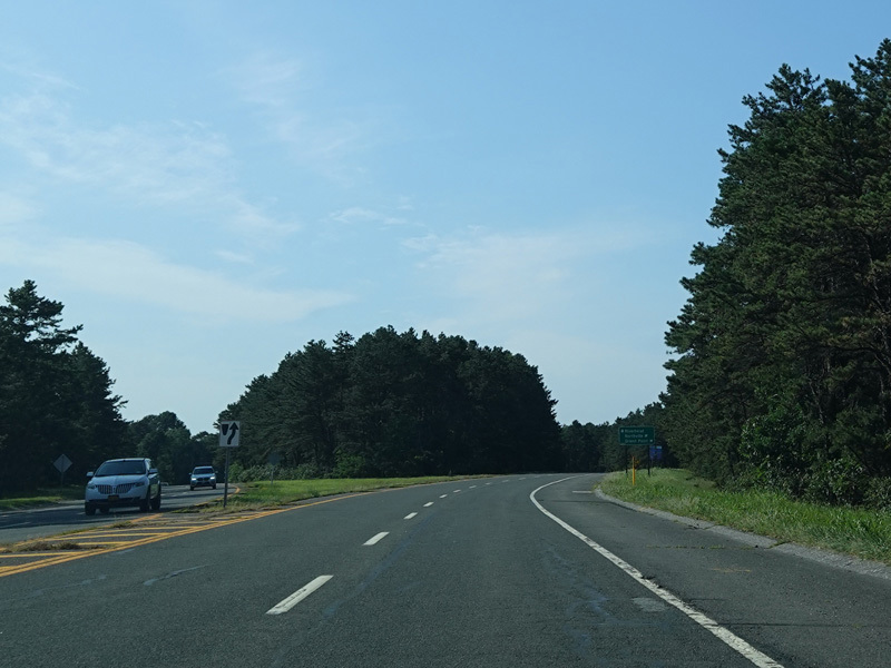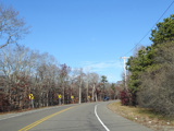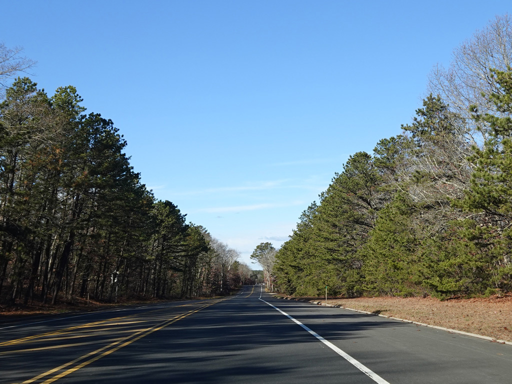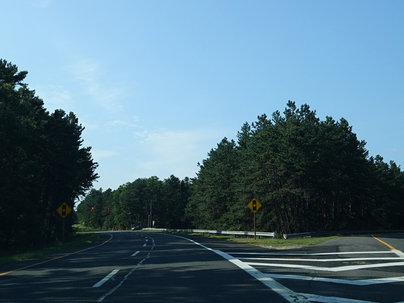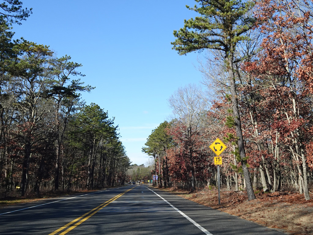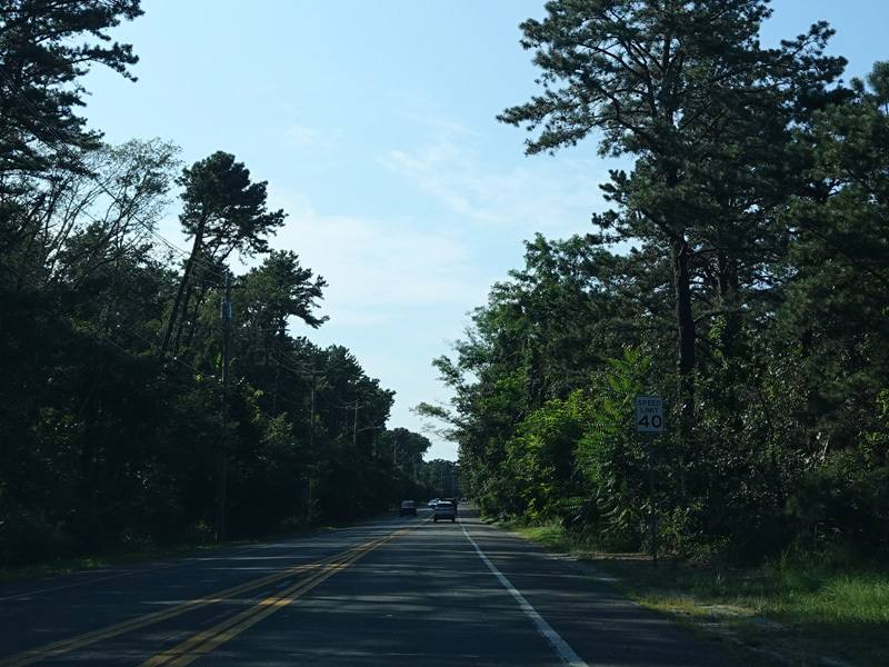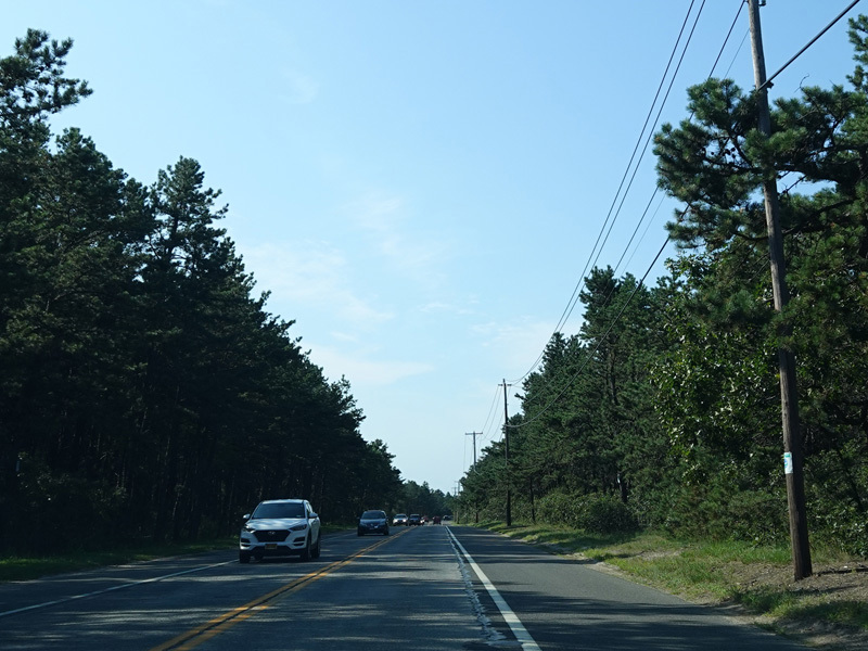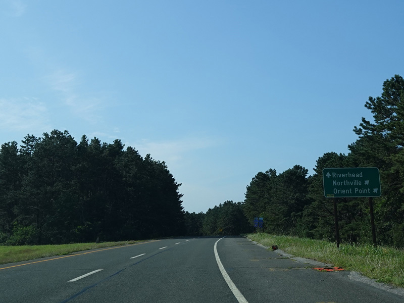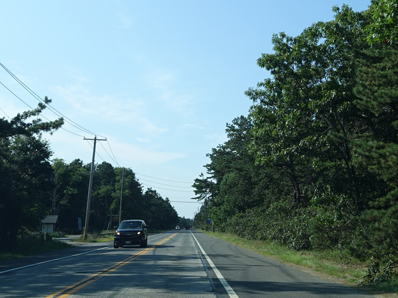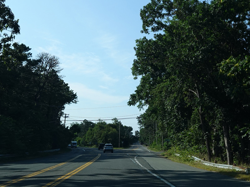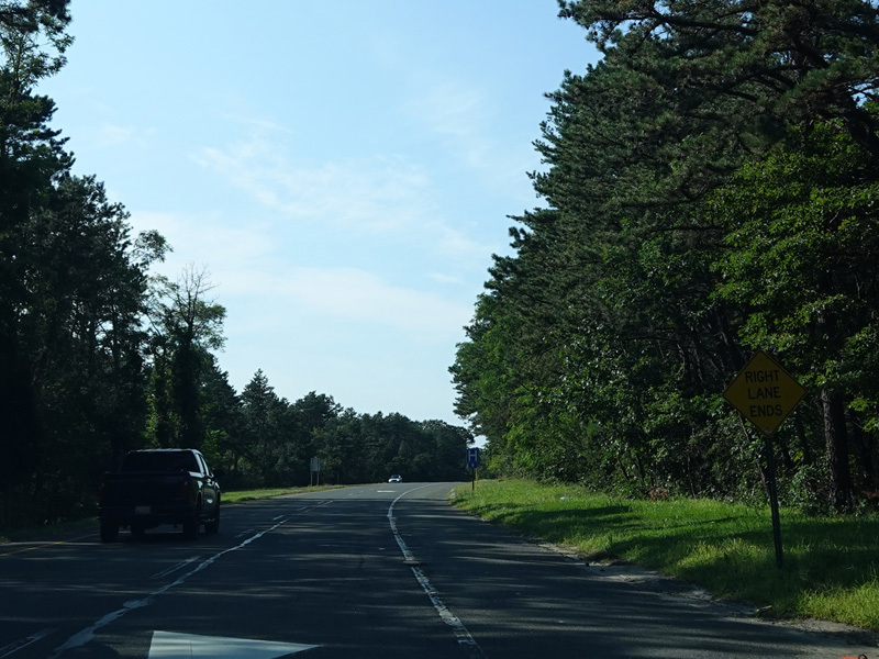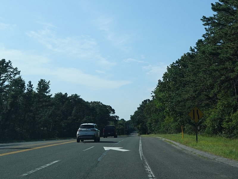 The median ends, and Quogue-Riverhead Road narrows back down to two lanes.