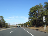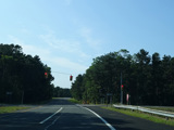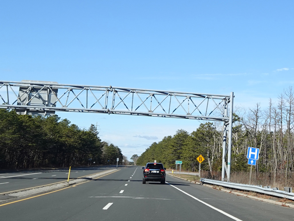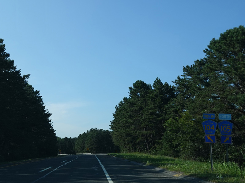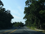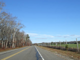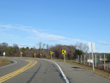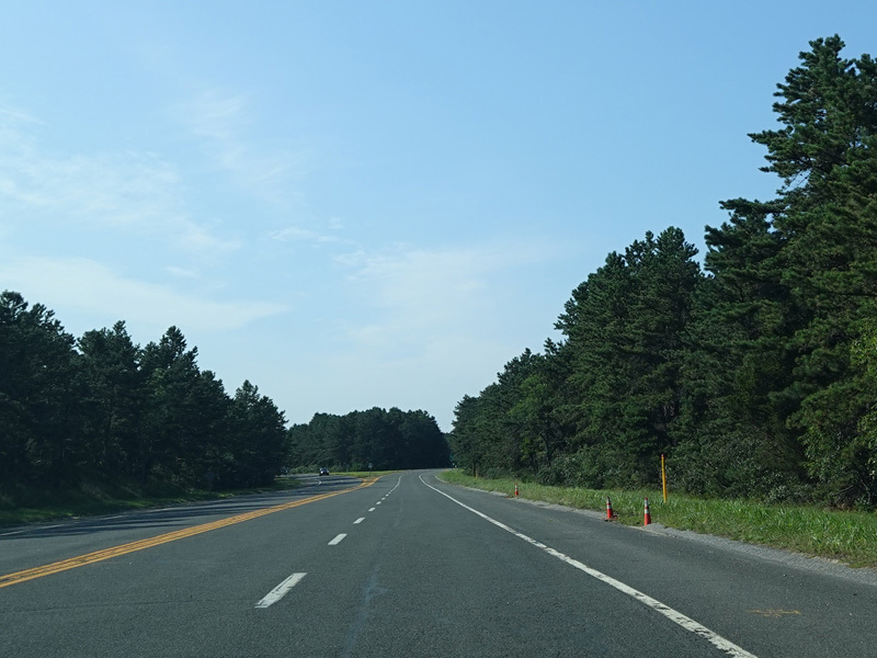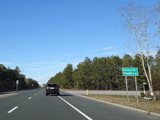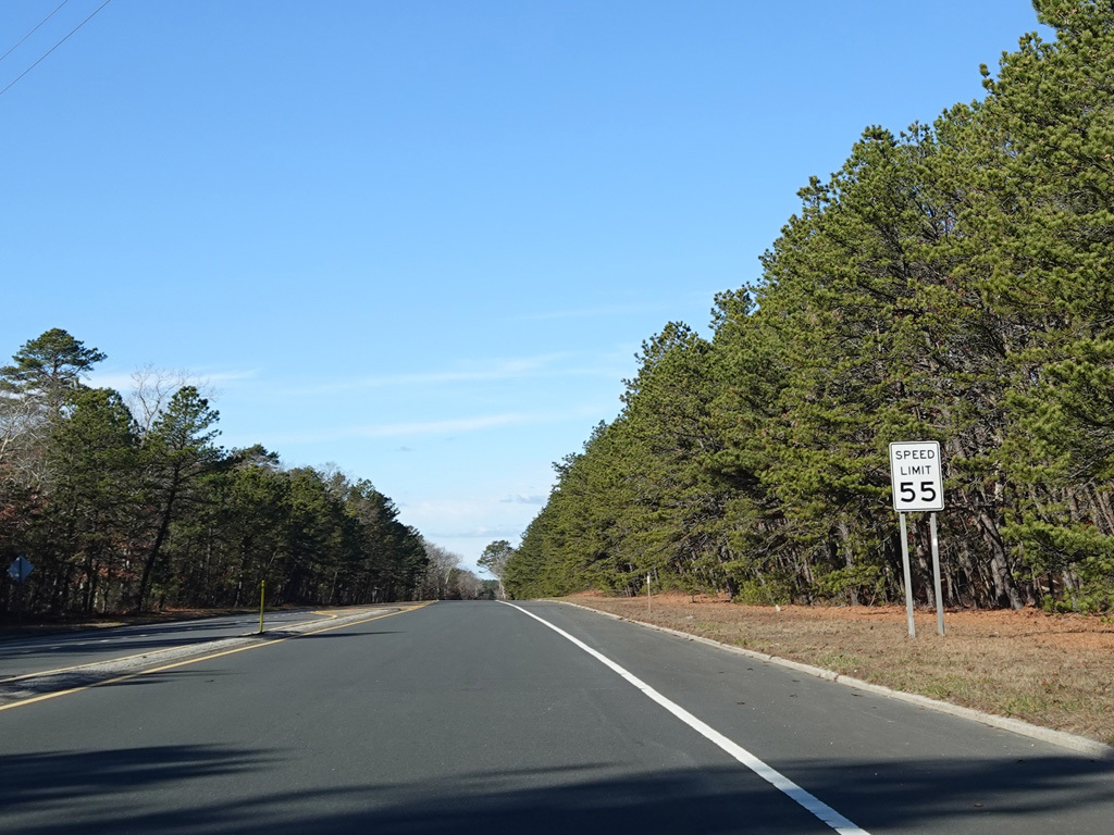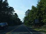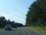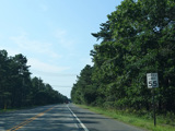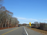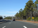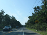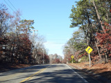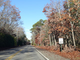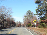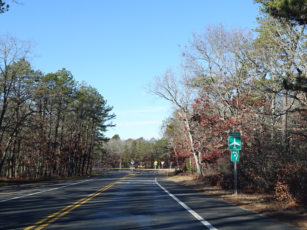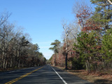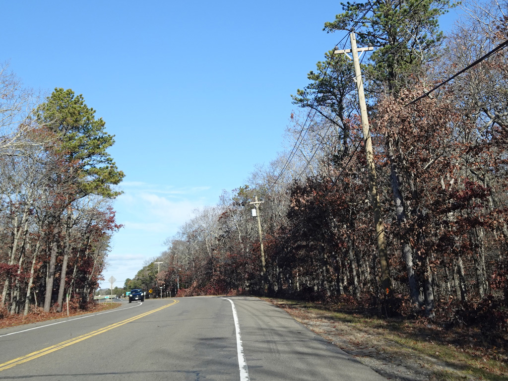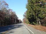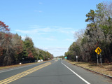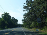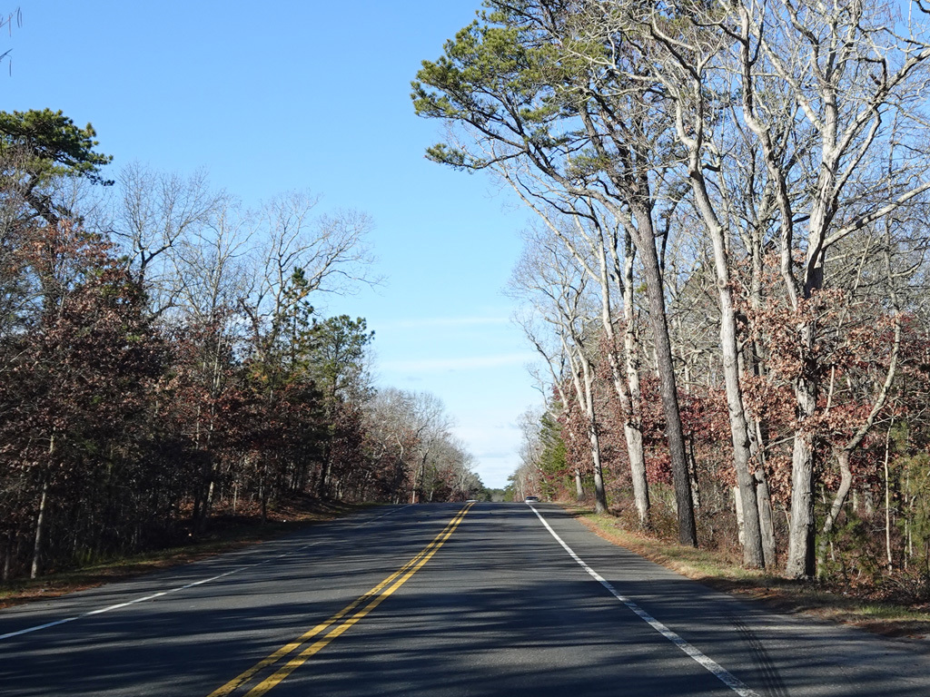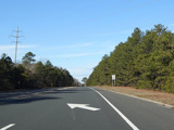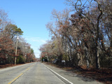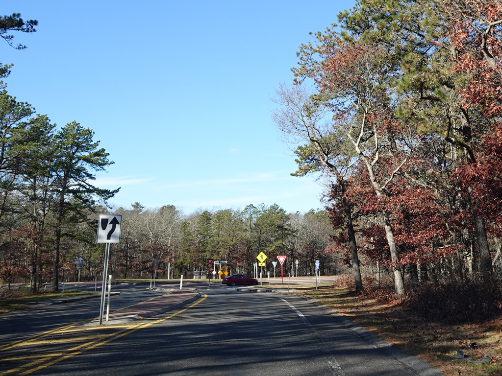 The median ends, and Quogue-Riverhead Road narrows back down to two lanes.