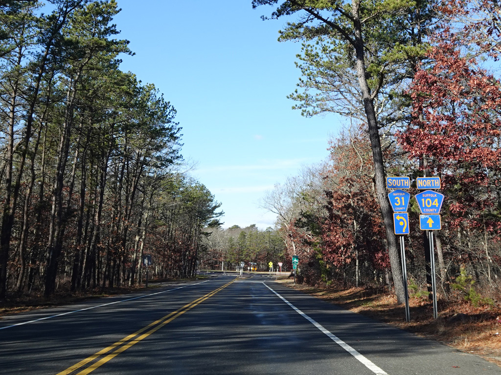 There is a roundabout at the northern terminus of Old Riverhead Road (CR 31). Quogue-Riverhead exits the roundabout heading north again.