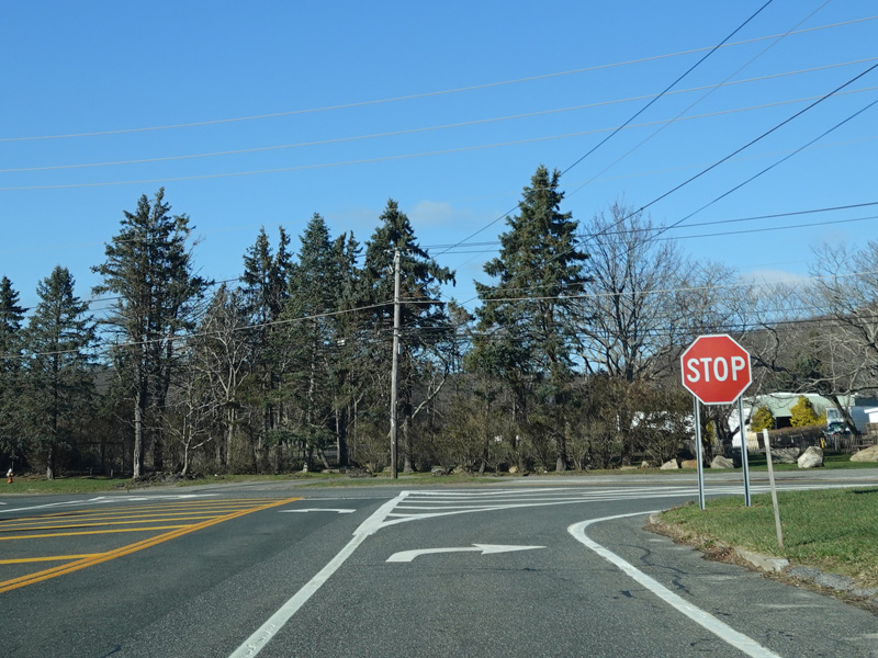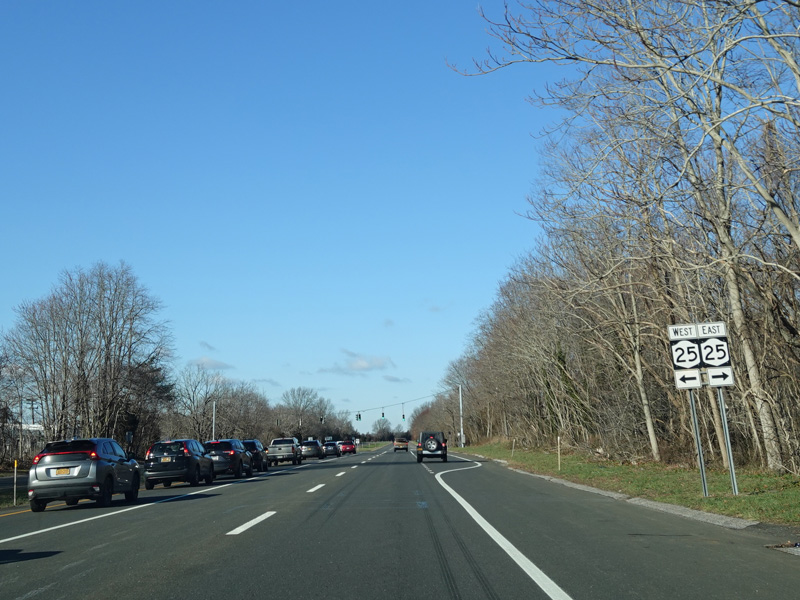 There is a traffic light at Main Road (NY 25). Turn right to go east or left to go west.