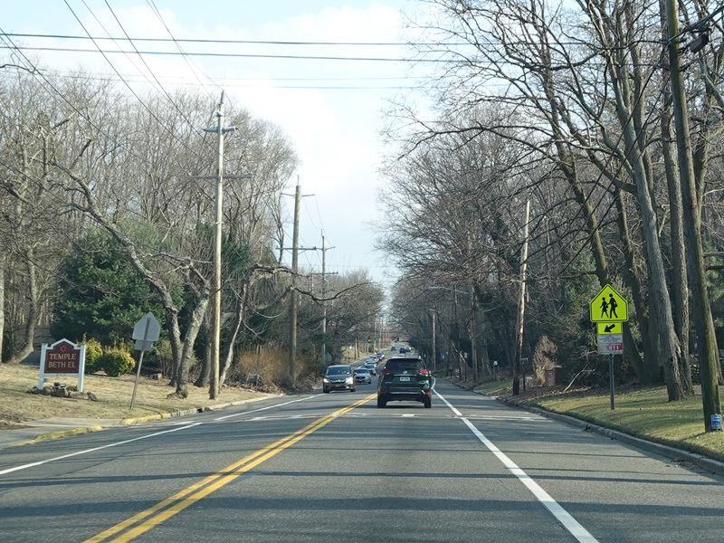 There is a traffic light at Pulaski Road (CR 11). Turn left to go east or right to go west.