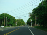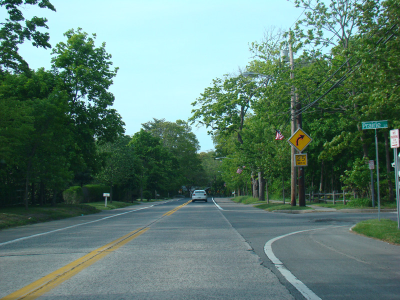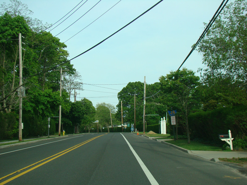 South Country Road ends here at Montauk Highway (CR 80). Turn right to go west or continue straight ahead to merge in going east. There is no county route signage at this intersection.