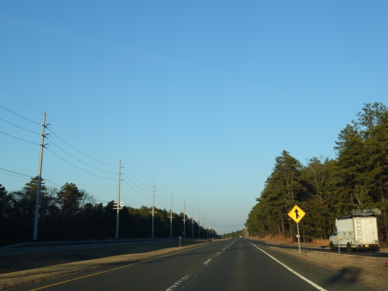 East Moriches-Riverhead Road continues to the northeast. The surroundings are pretty rural out here.