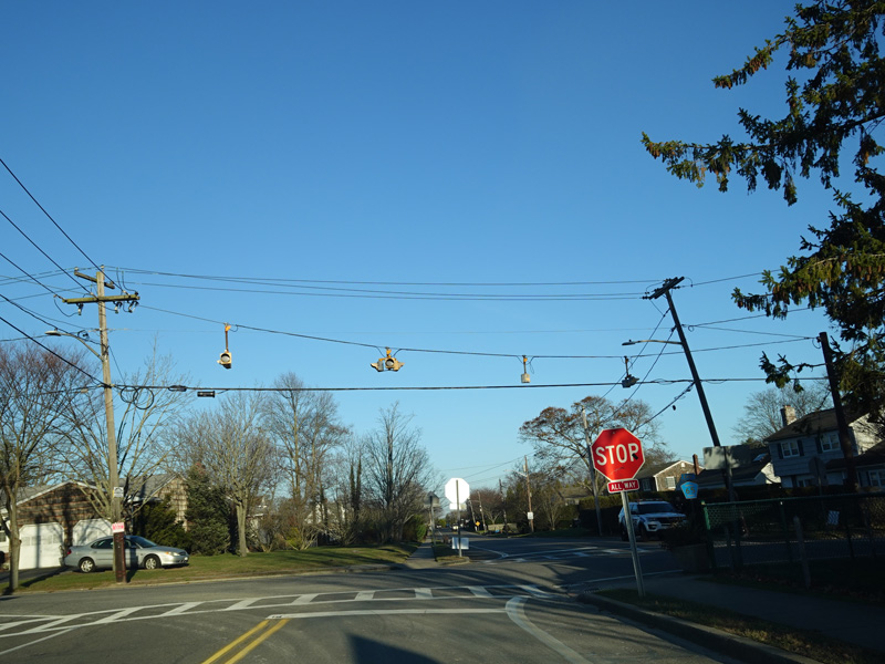 Welcome to Bayport! Middle Road continues to the east. There are a number of stop signs and a couple of flashers along this stretch.