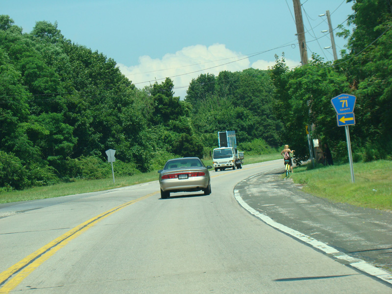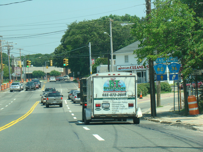 It used to be possible to turn left to go north on the William Floyd Parkway (CR 46). Left turns are now prohibited, and motorists wishing to go north must use the adjoining streets as jughandles.