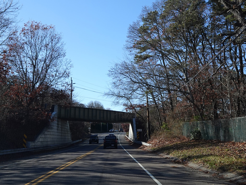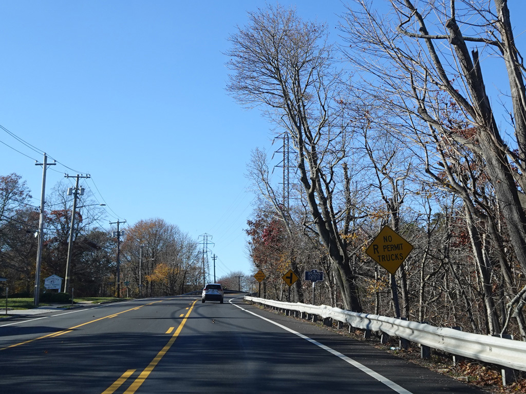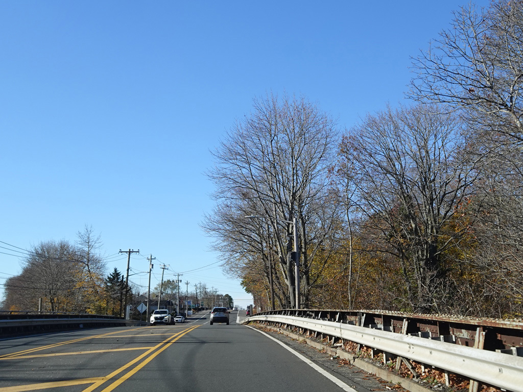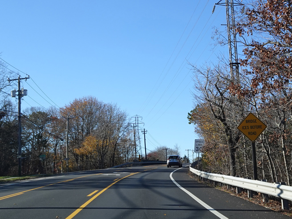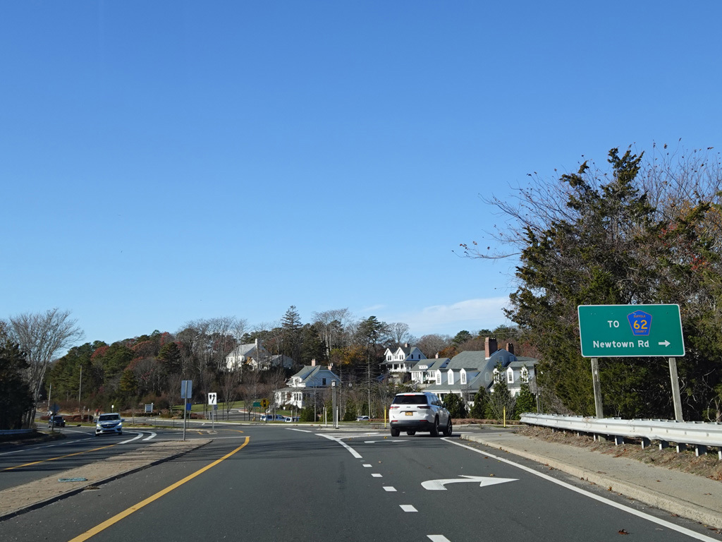 On the other side of the bridge, Newtown Road (CR 62) begins on the right.