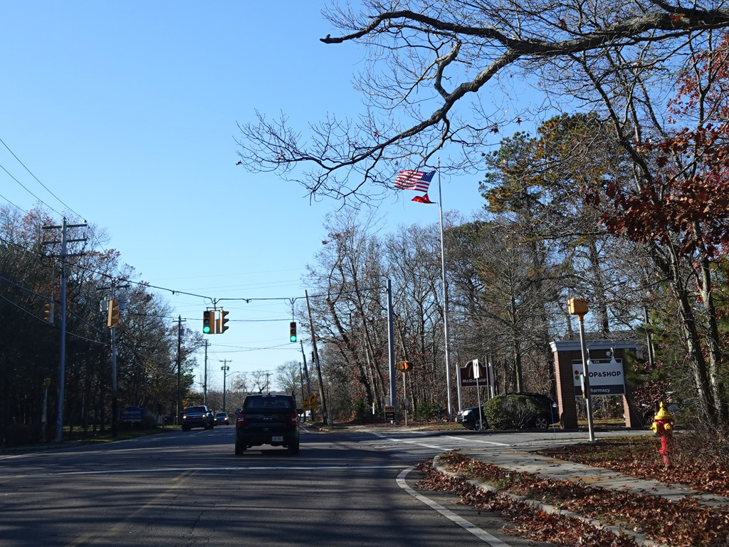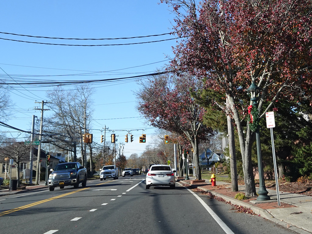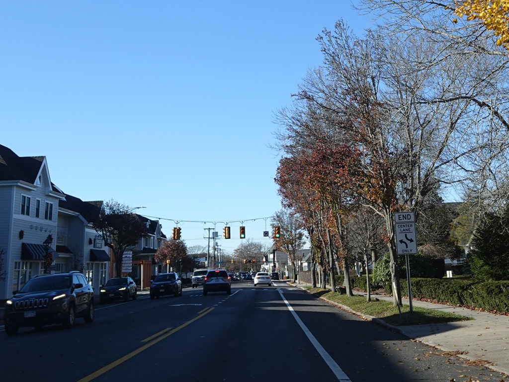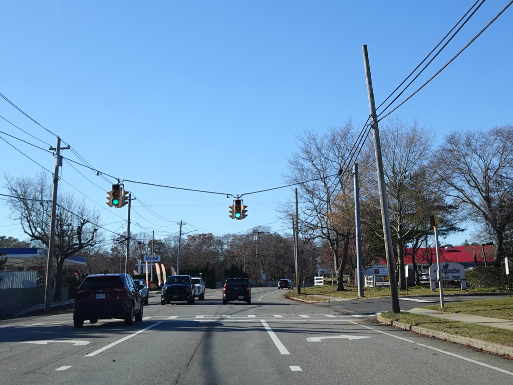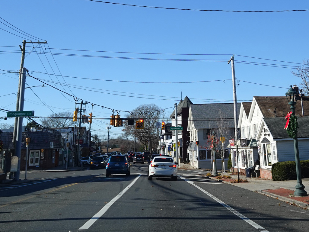 In Hampton Bays, there are traffic lights at Ponquogue Avenue, Squiretown Road, Springville Road, and Cemetery Road.
