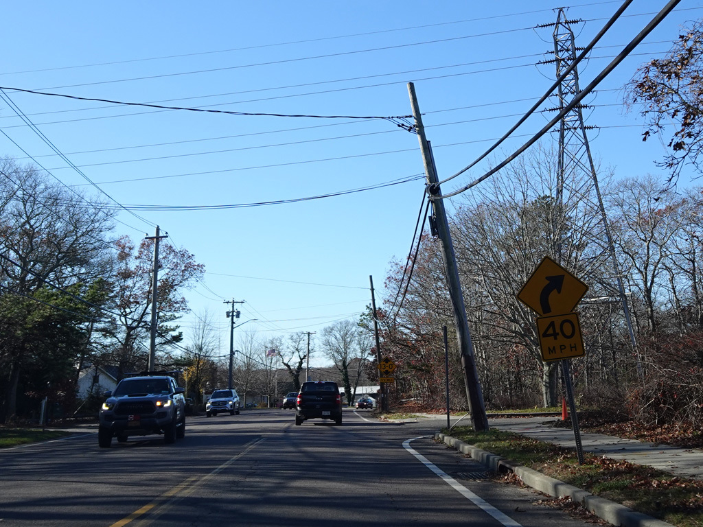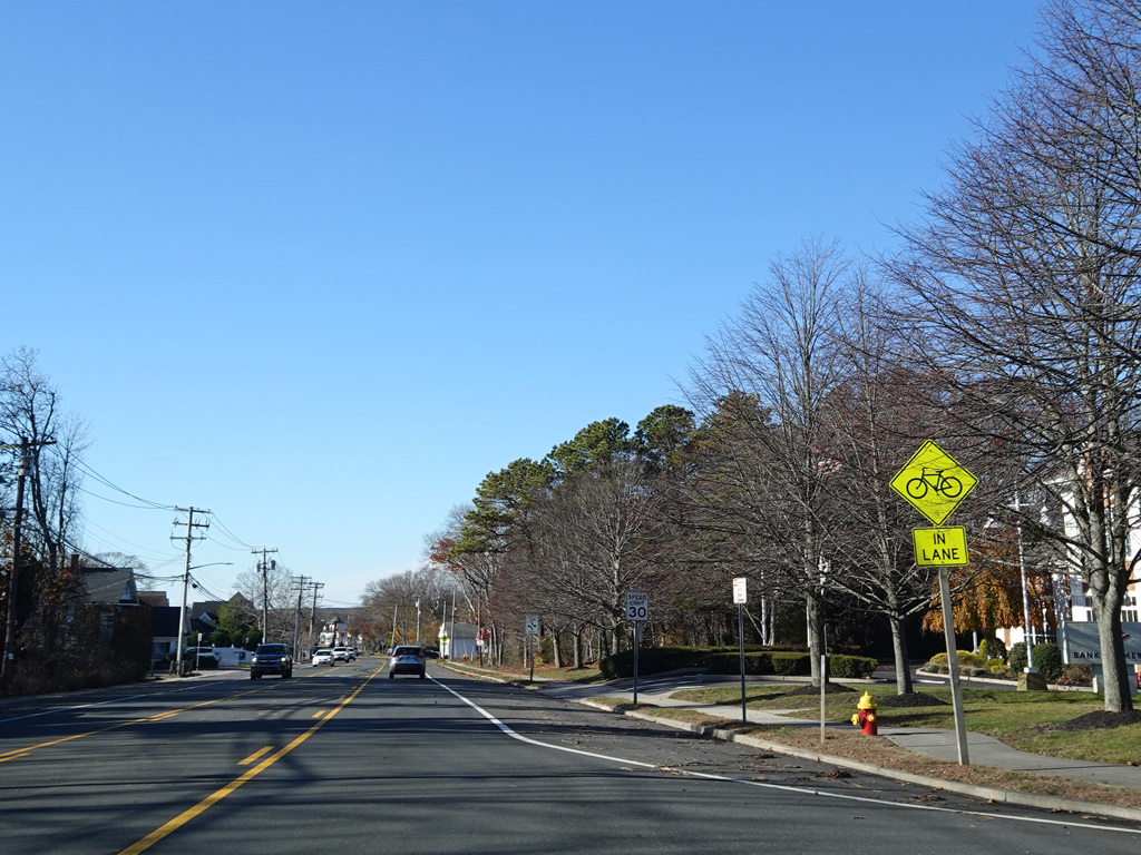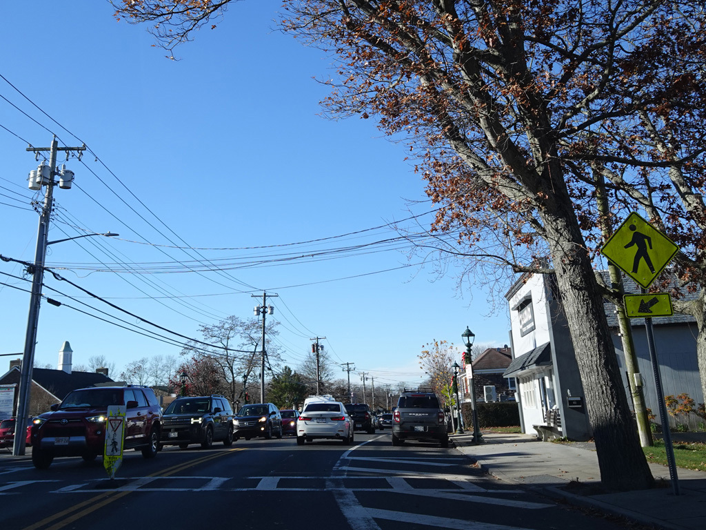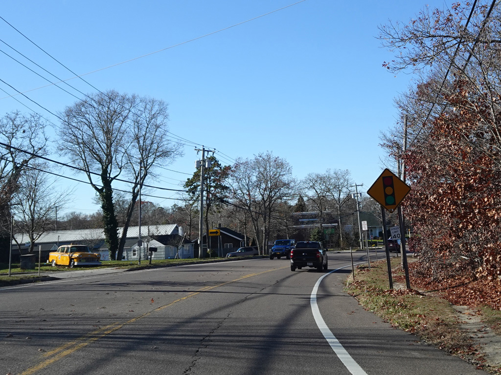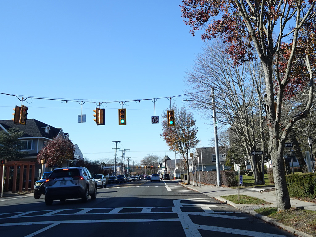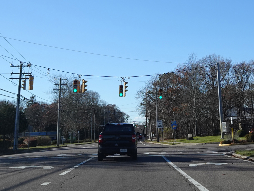 In Hampton Bays, there are traffic lights at Ponquogue Avenue, Squiretown Road, Springville Road, and Cemetery Road.
