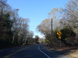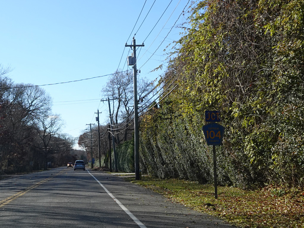 Quogue-Riverhead Road (CR 104) begins on the right at an uncontrolled intersection.