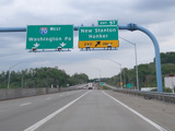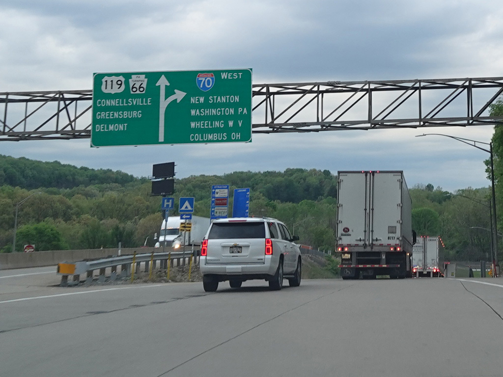 I-70 splits off from the Pennsylvania Turnpike (I-76) at exit 75 in New Stanton, following a ramp that has only one lane.