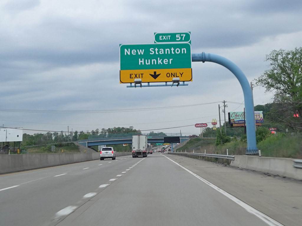 Exit 57 is for New Stanton and Hunker. The exit leads to Bair Boulevard, but only the town names are posted.