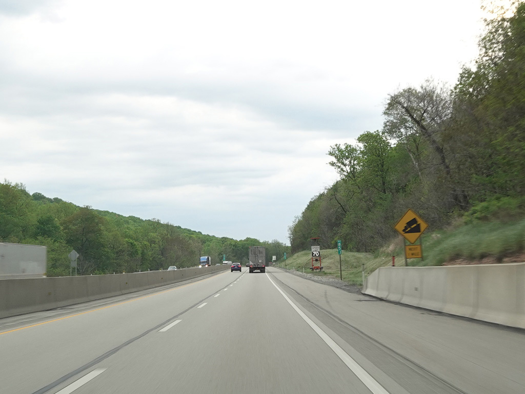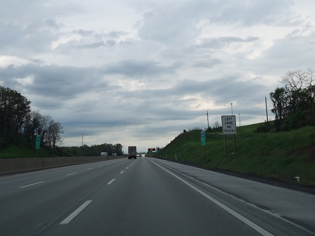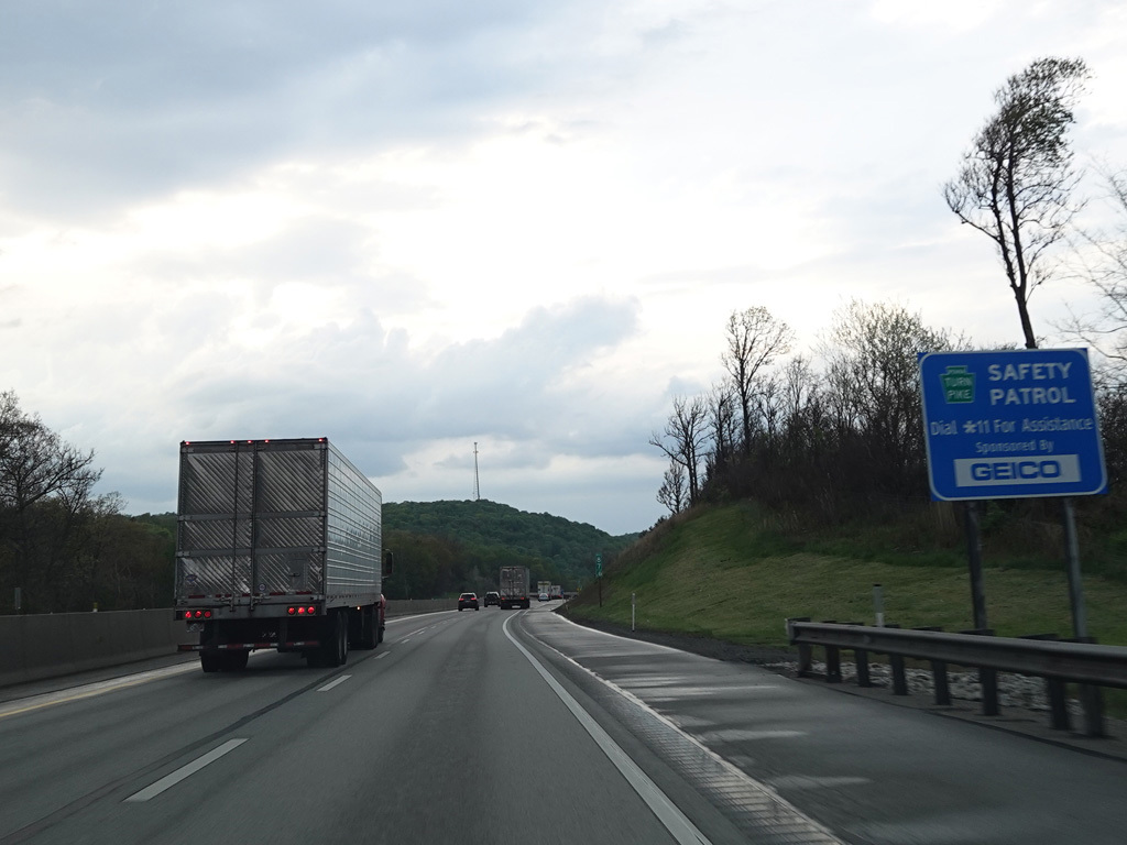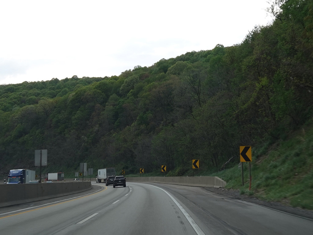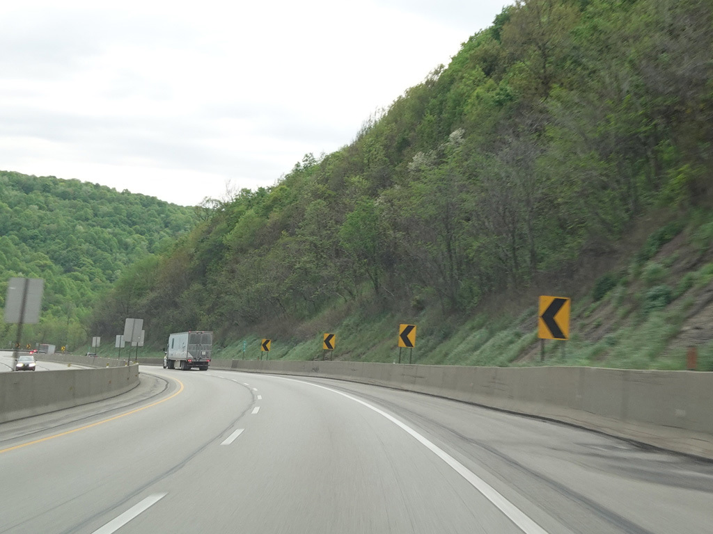 There is another short stretch where the turnpike has three westbound lanes as it goes uphill.