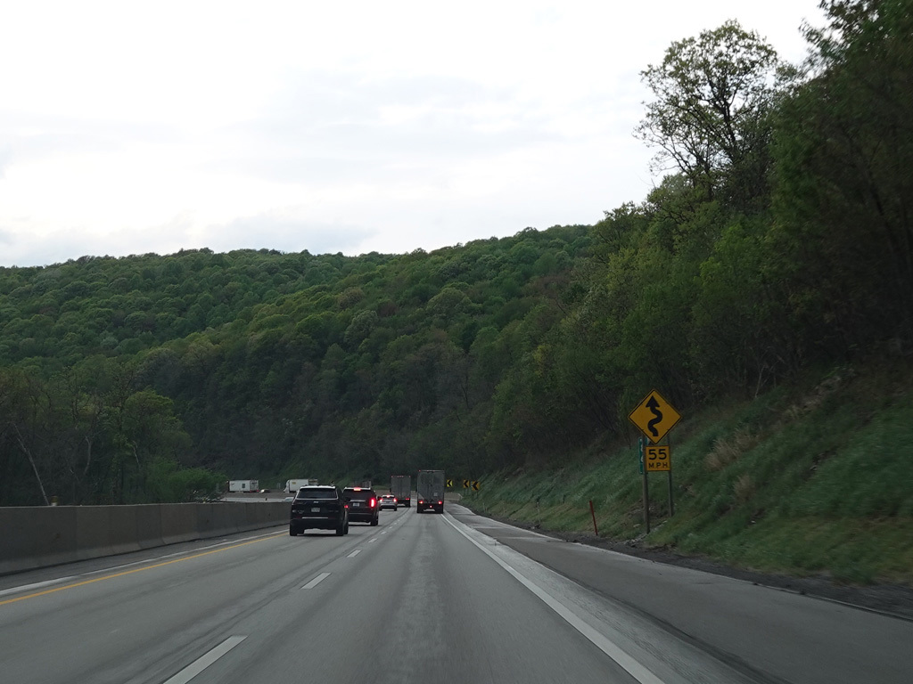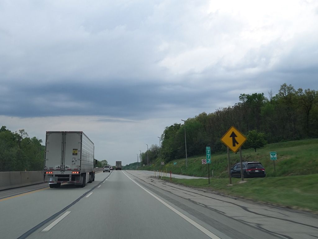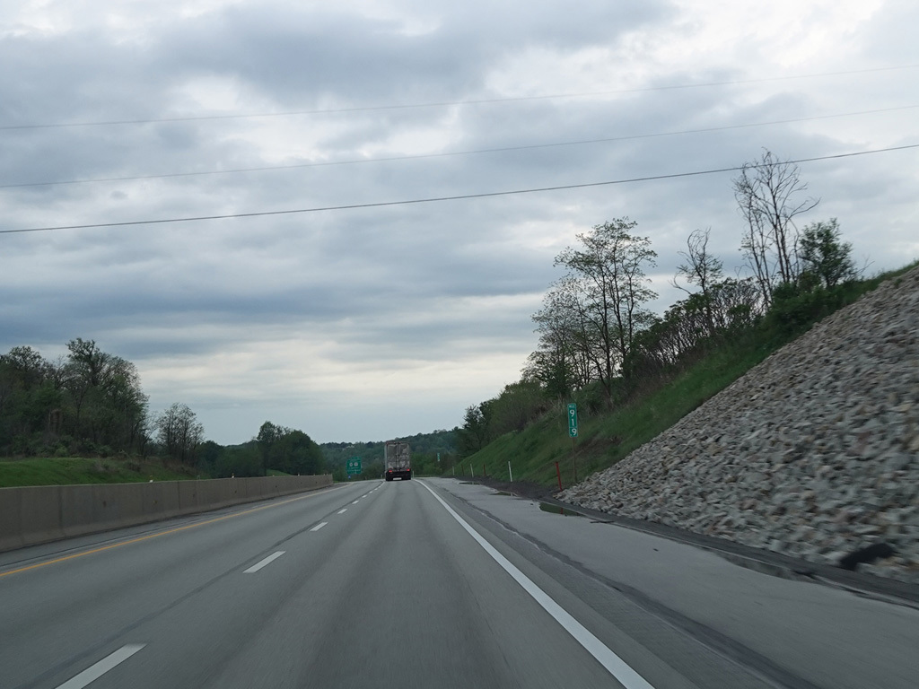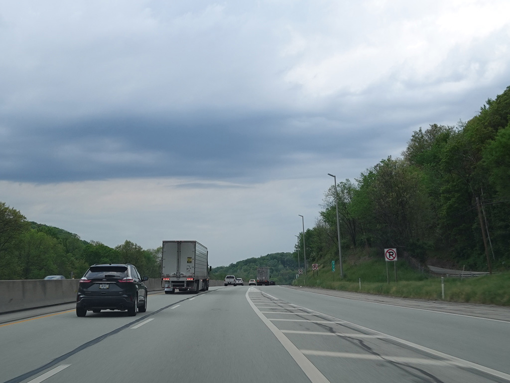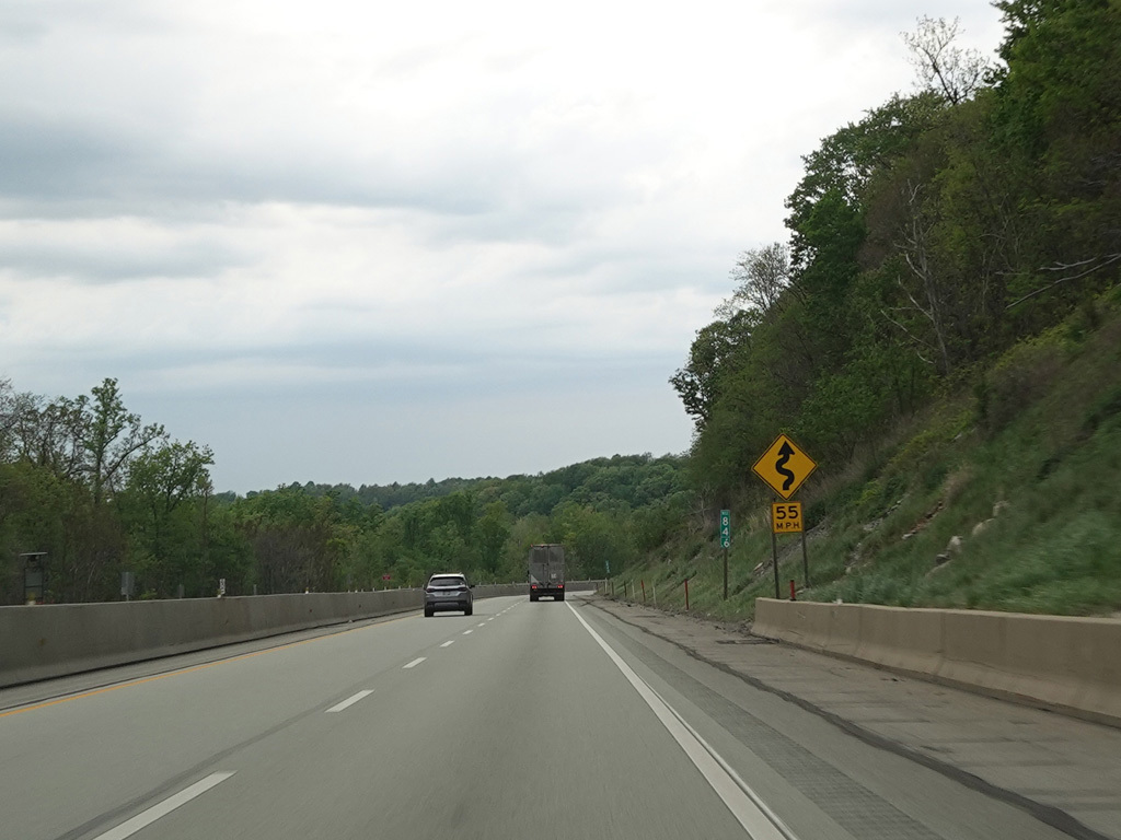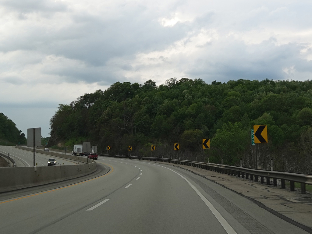 There is another short stretch where the turnpike has three westbound lanes as it goes uphill.