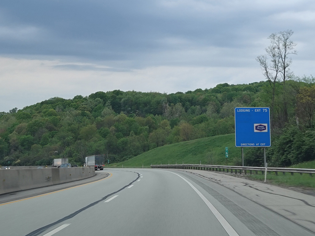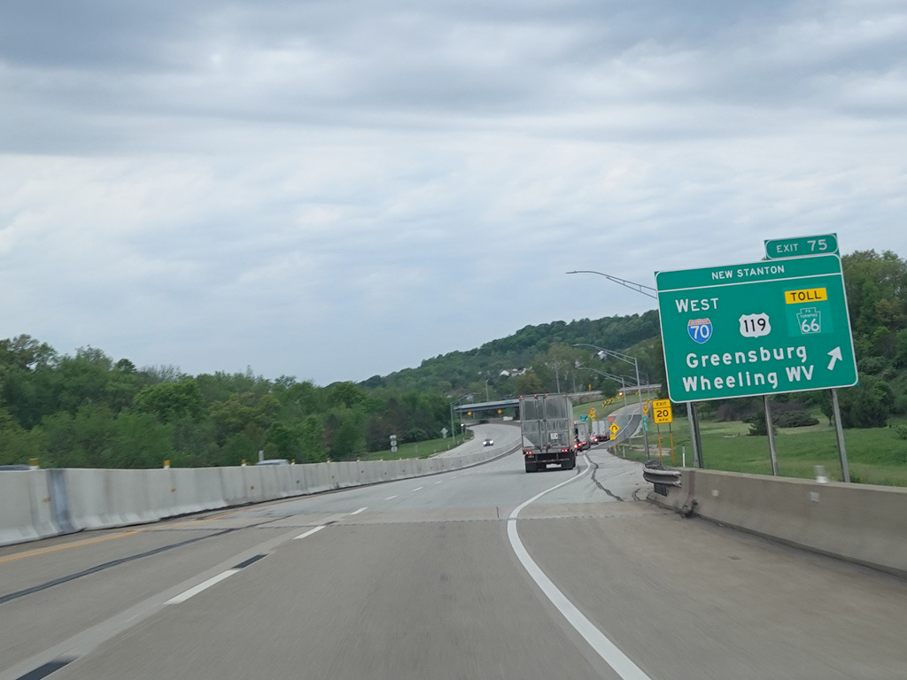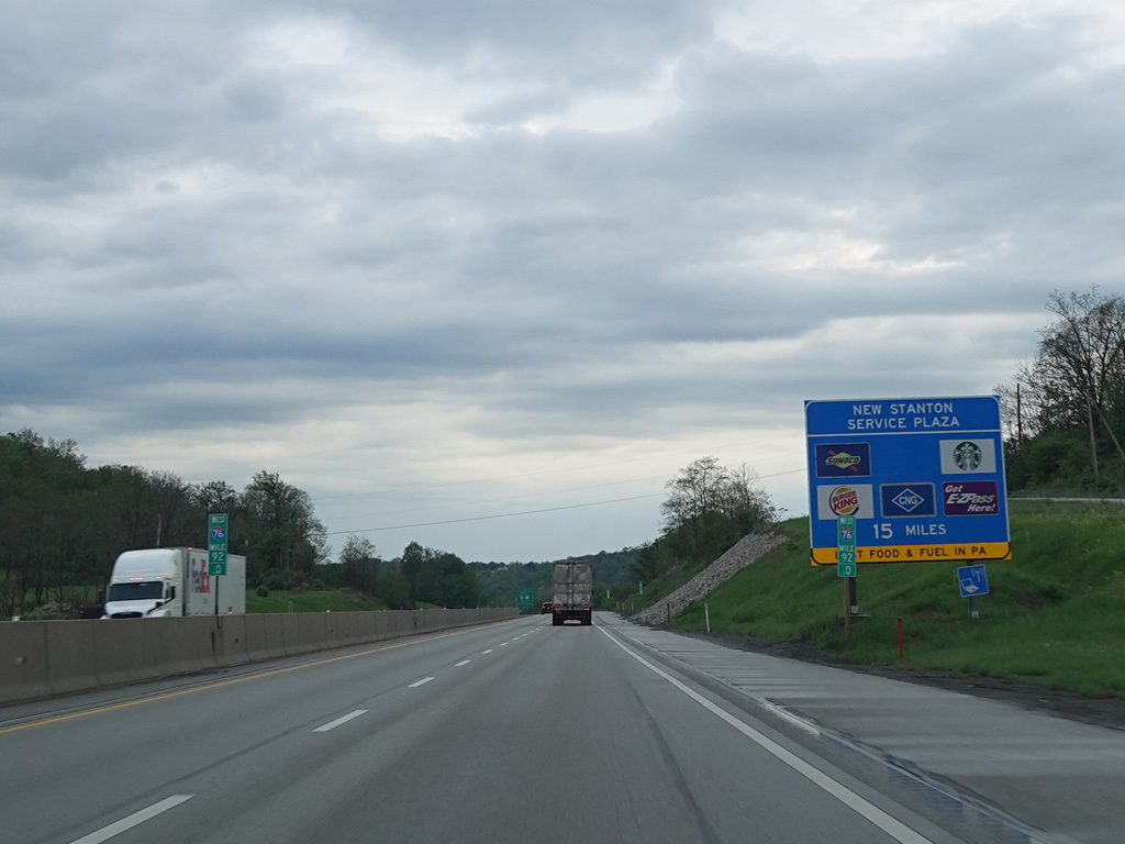 The New Stanton Service Plaza is located a few miles before exit 75.