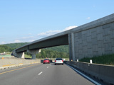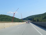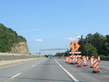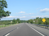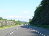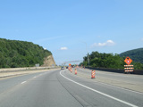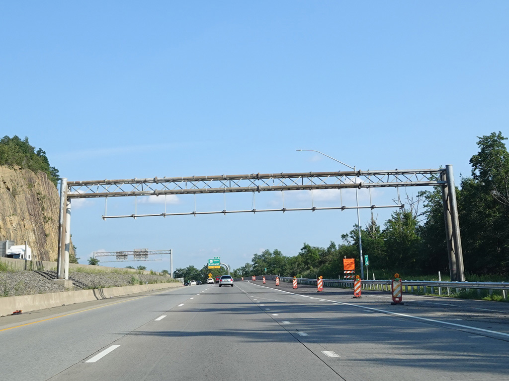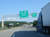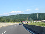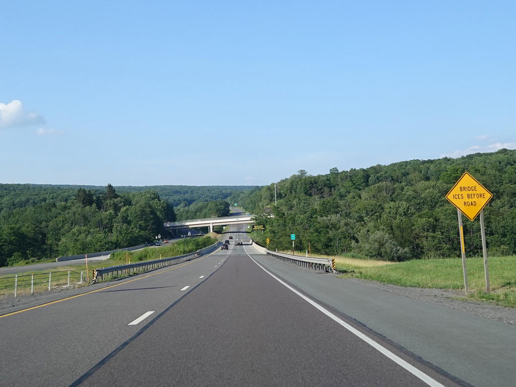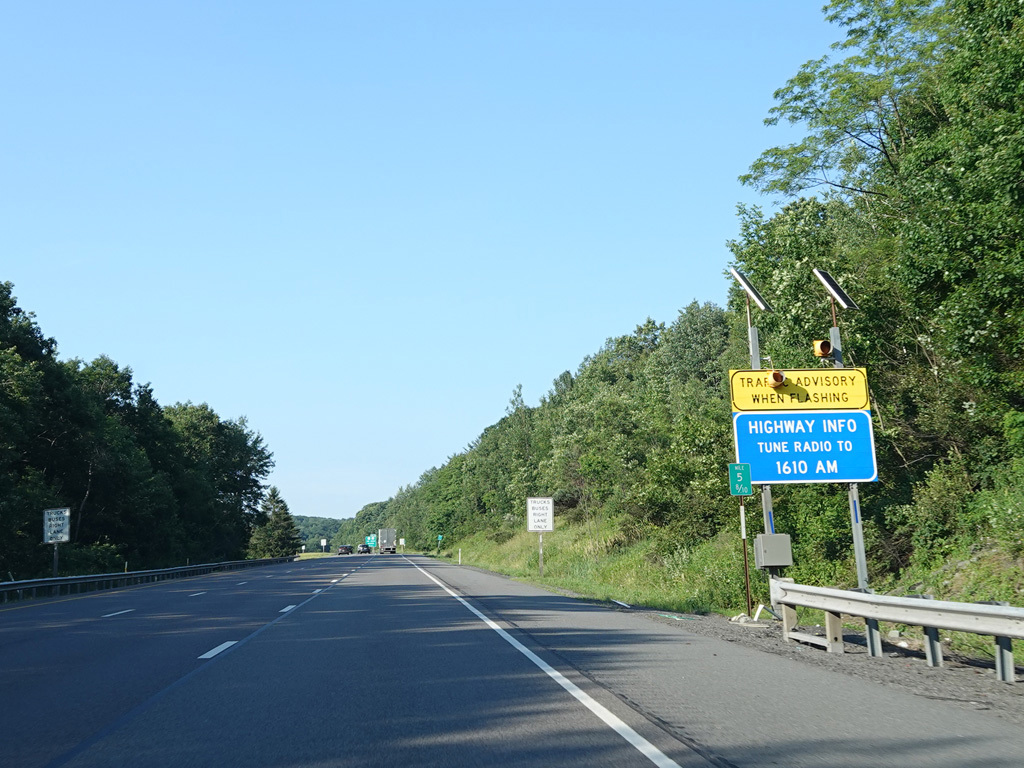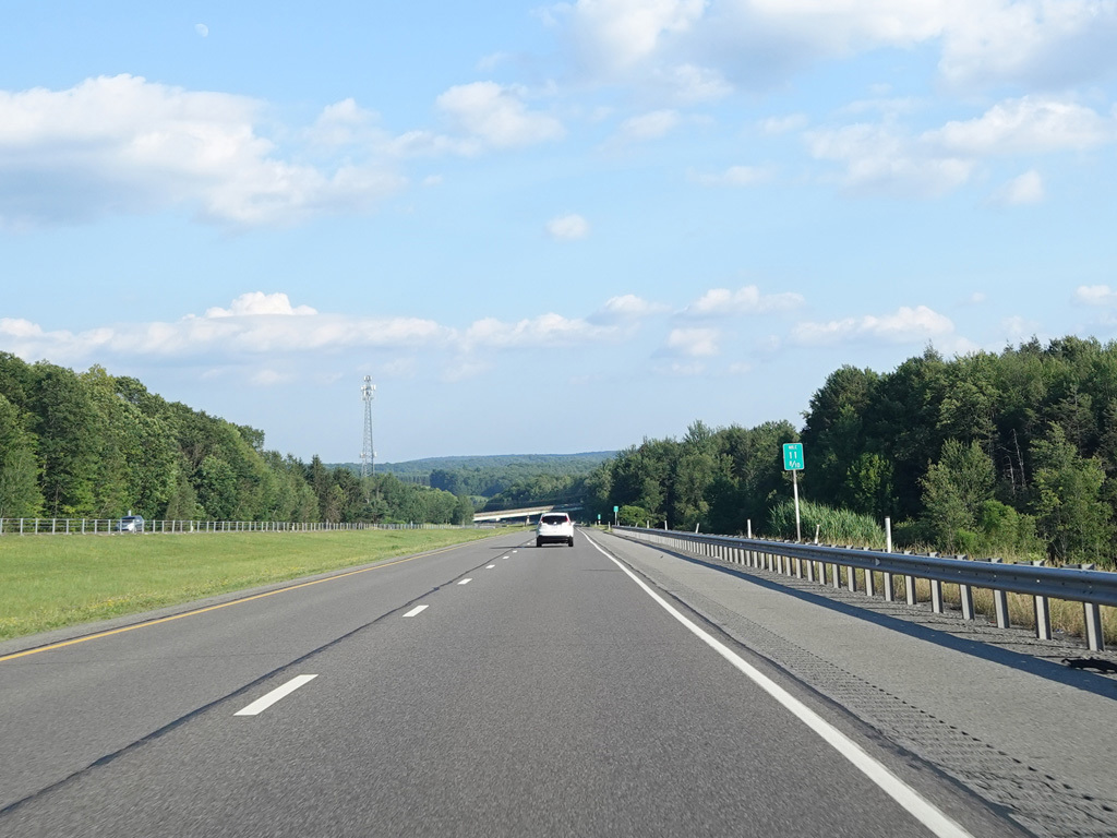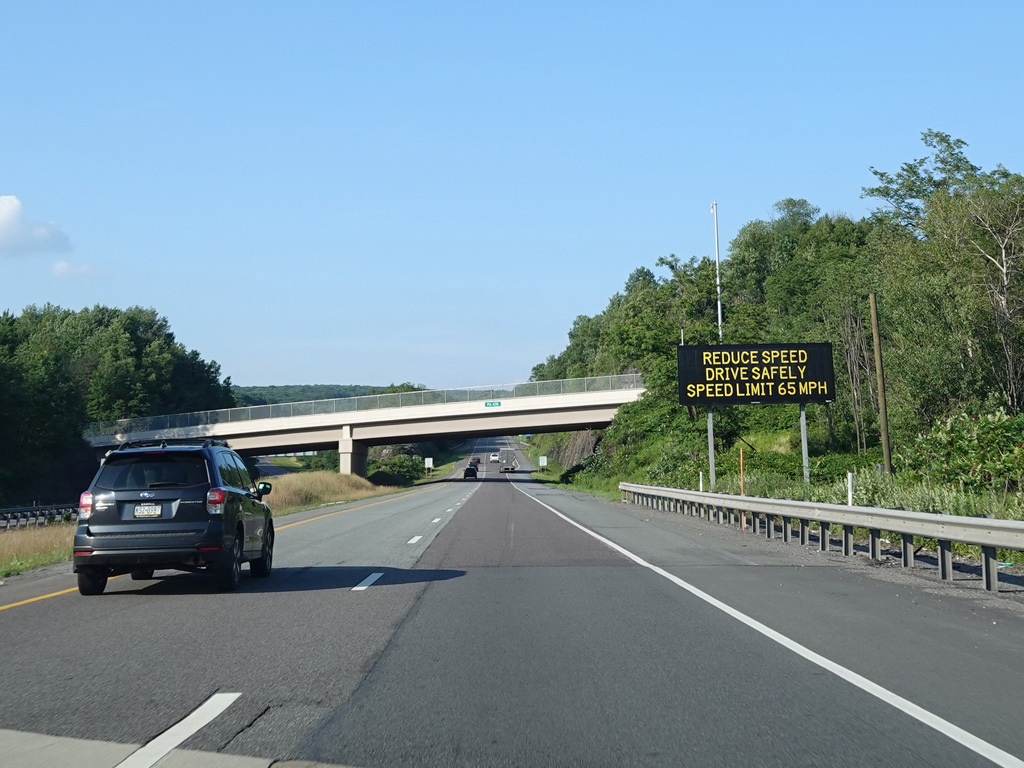 East of exit 4, there is a third northbound lane as the highway goes uphill. Exit 8 is for PA 247 and Mount Cobb Road (PA 348).