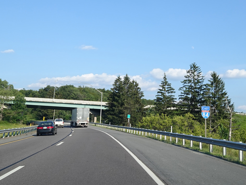 I-84 begins at I-81 in Dunmore. It is multiplexed with I-380 for the first few exits. Exit 1 is for Tigue Street.