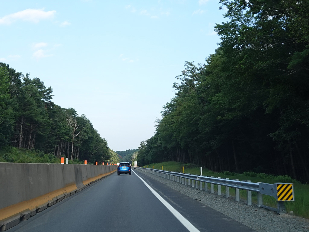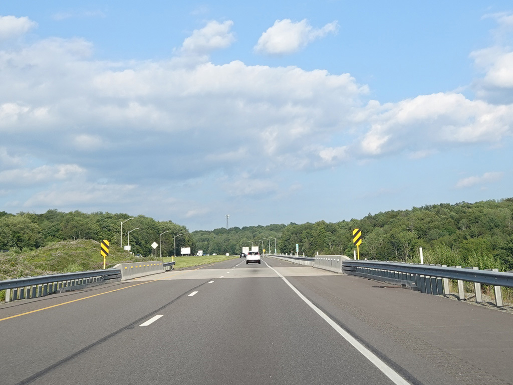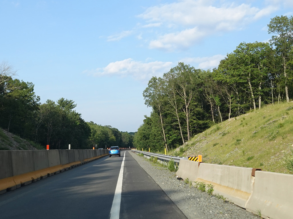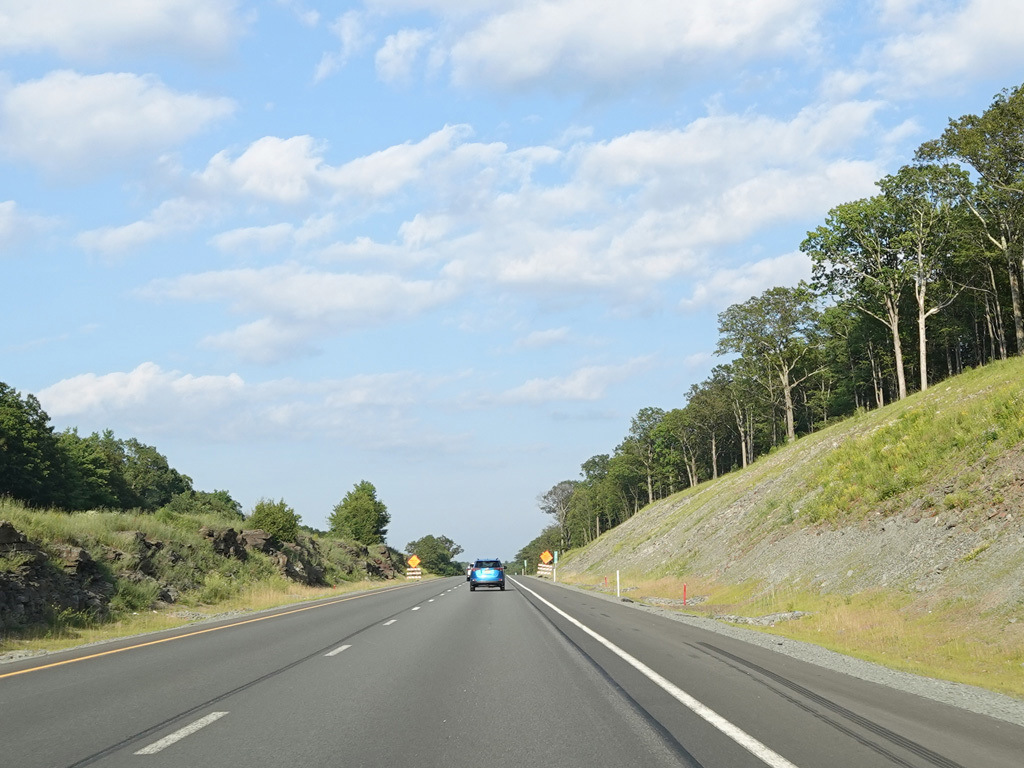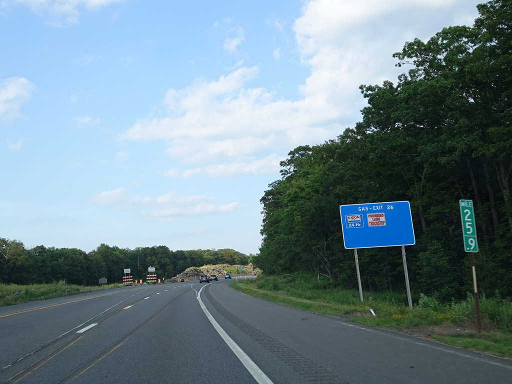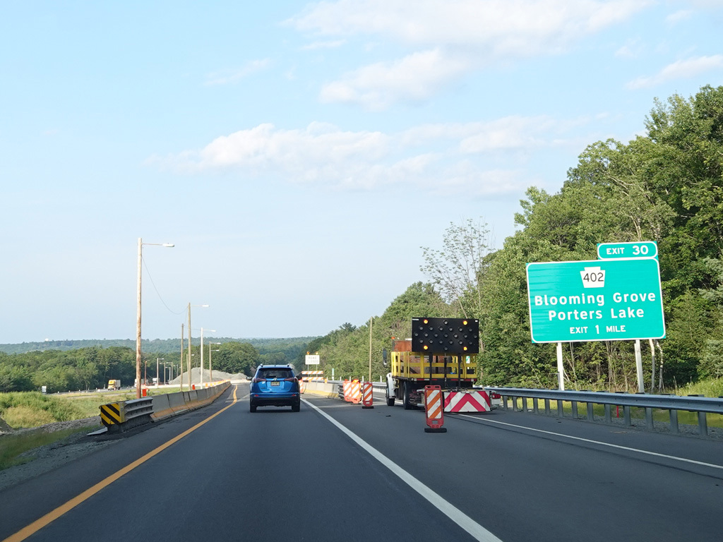 Exit 53 is for Pennsylvania Avenue (US 6/US 209). Due to construction, all traffic is forced into what are normally the eastbound lanes, with one lane for each direction. There is a temporary ramp crossing over to the westbound lanes to provide access to the exit.