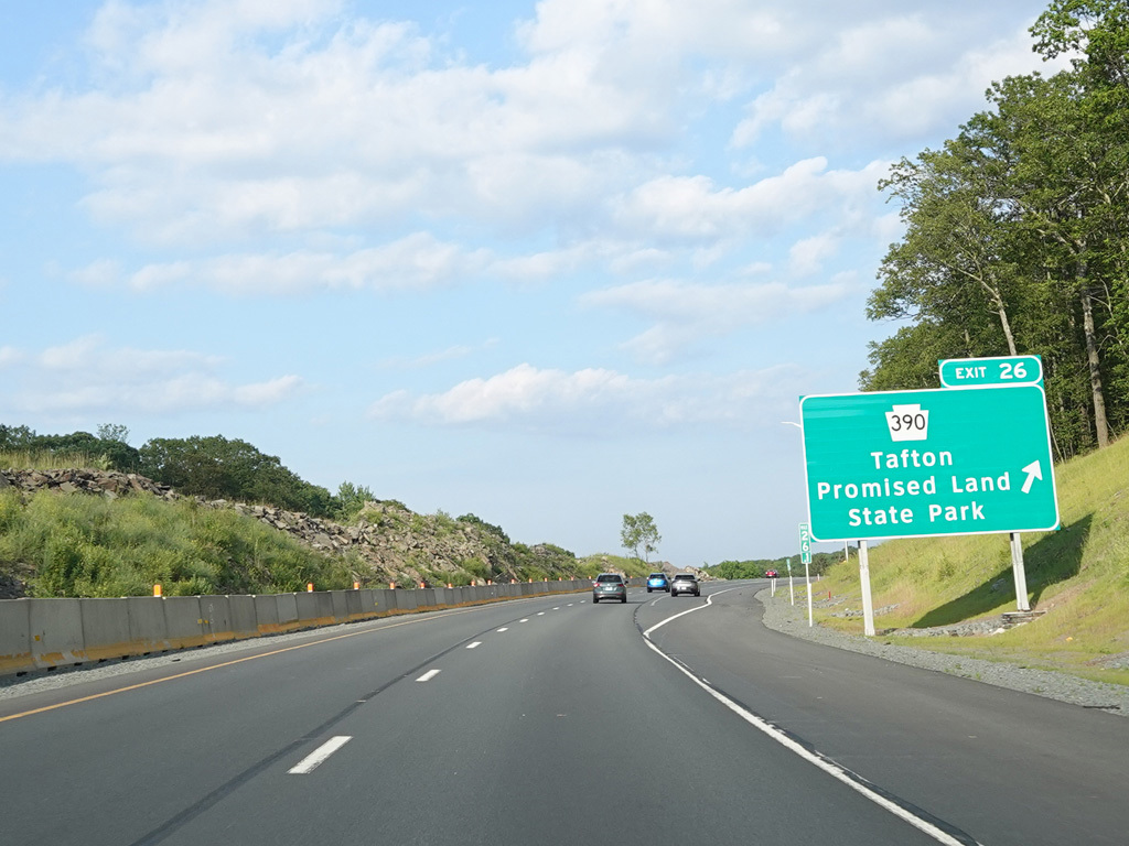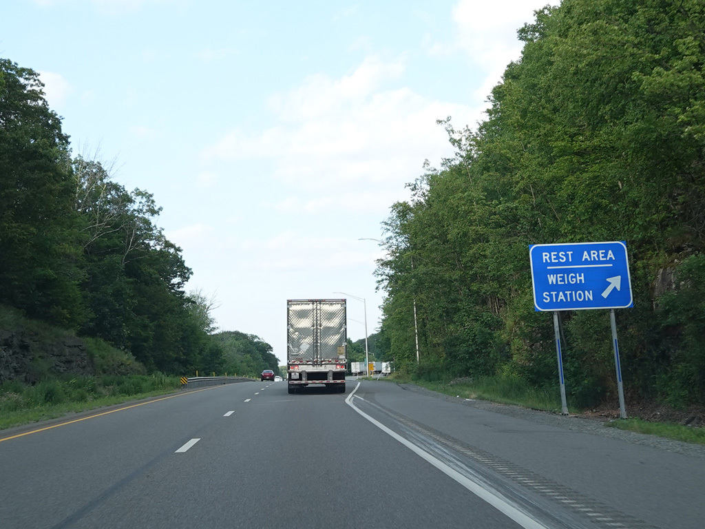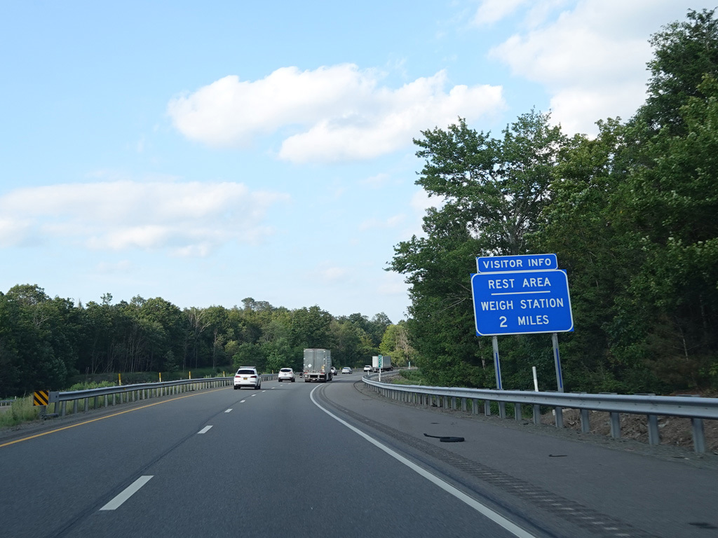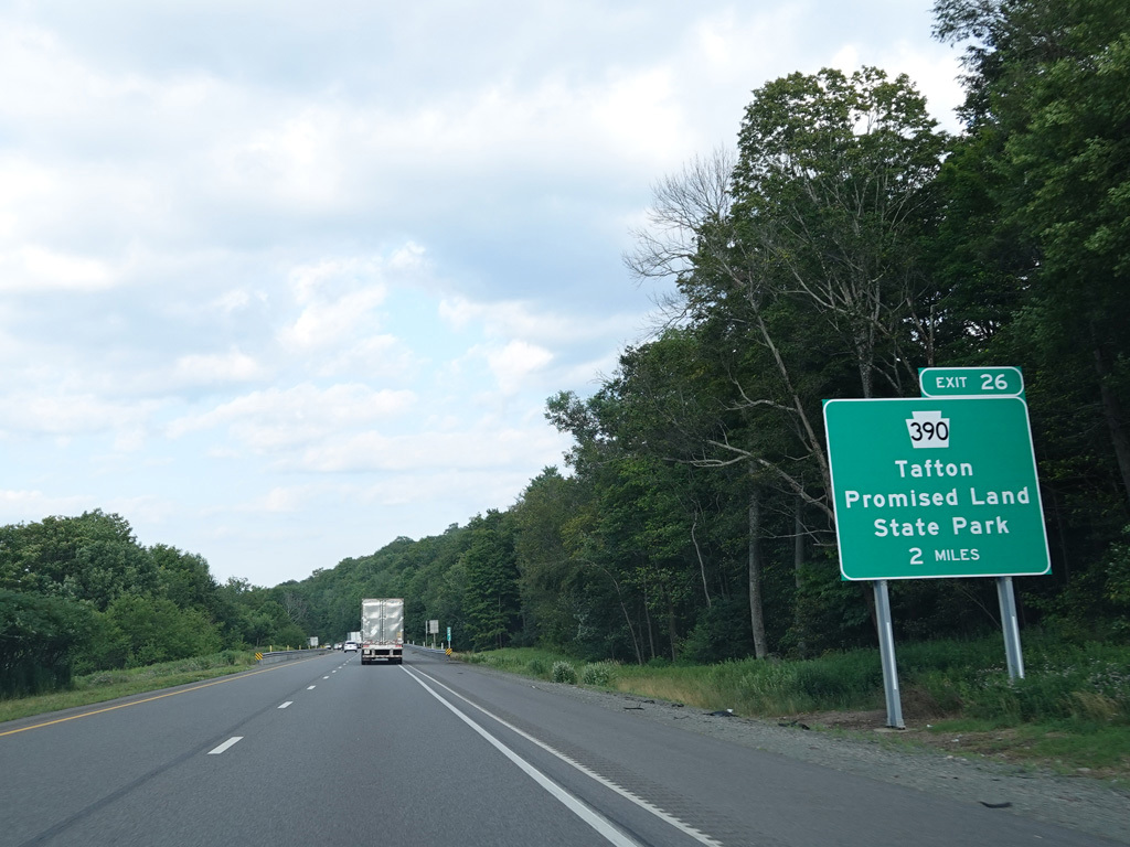 Exit 26 is for PA 390. There is a rest area and weigh station just before the exit.