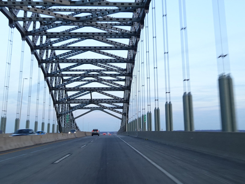 The Delaware River Bridge carries I-95 across the Delaware River to New Jersey.