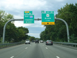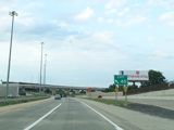 The roadway gradually curves to the east and merges with the Pennsylvania Turnpike, which is designated I-276 west of here.
