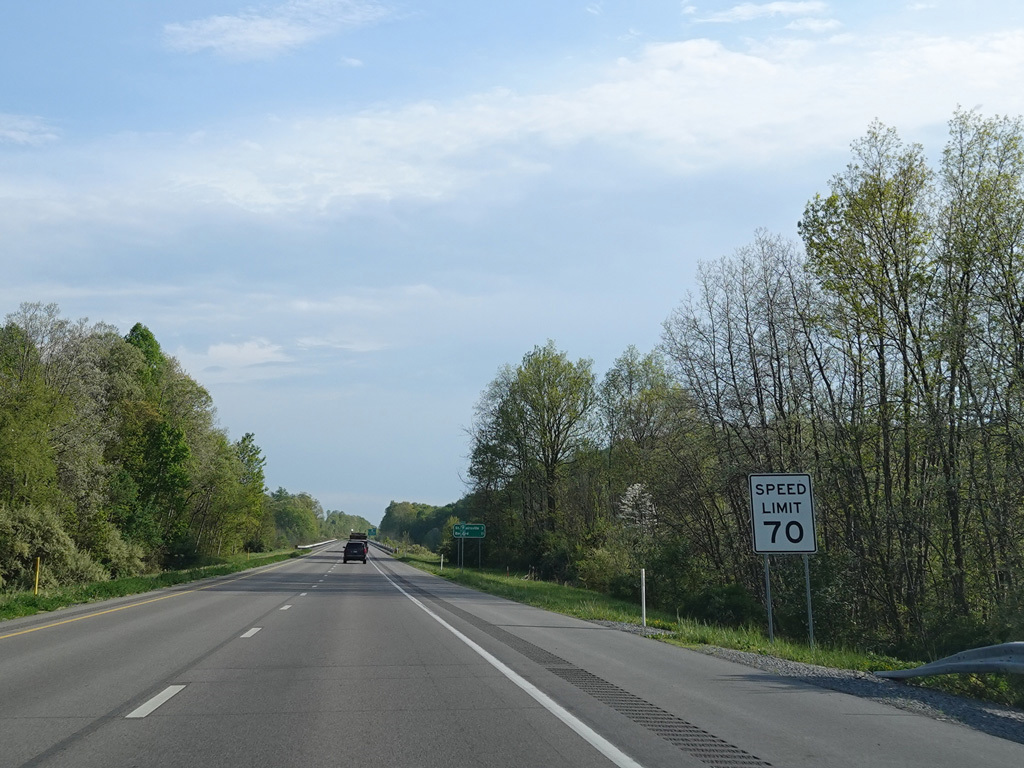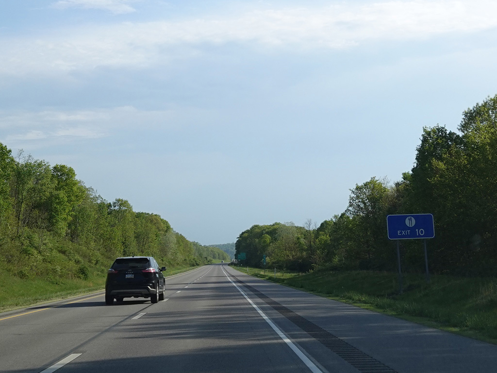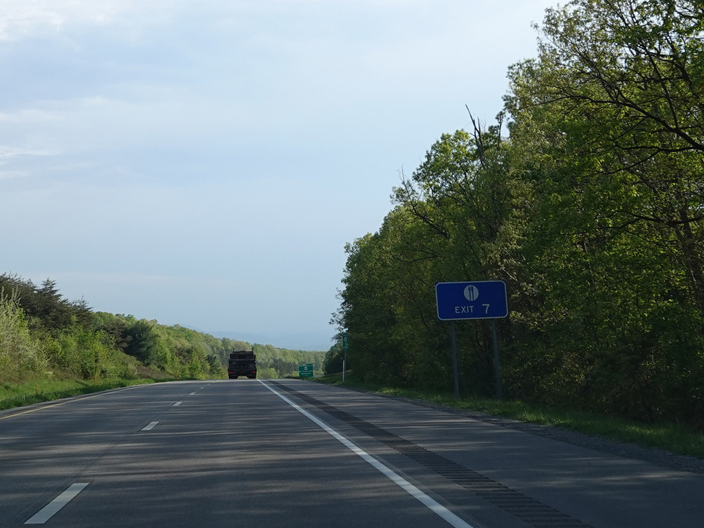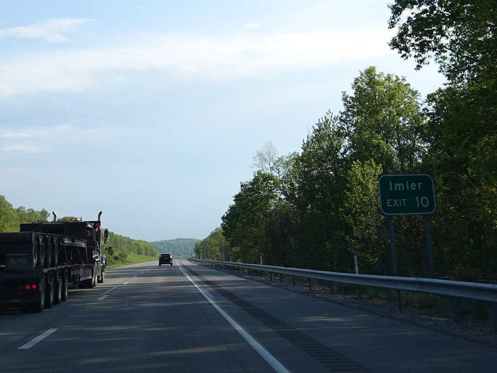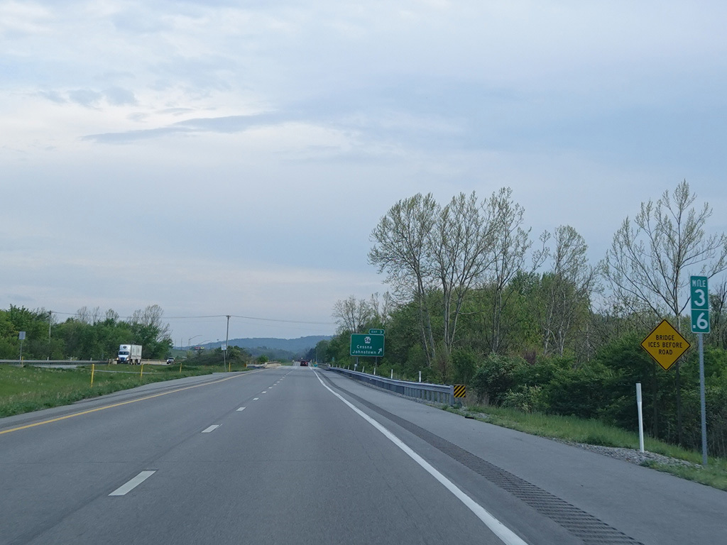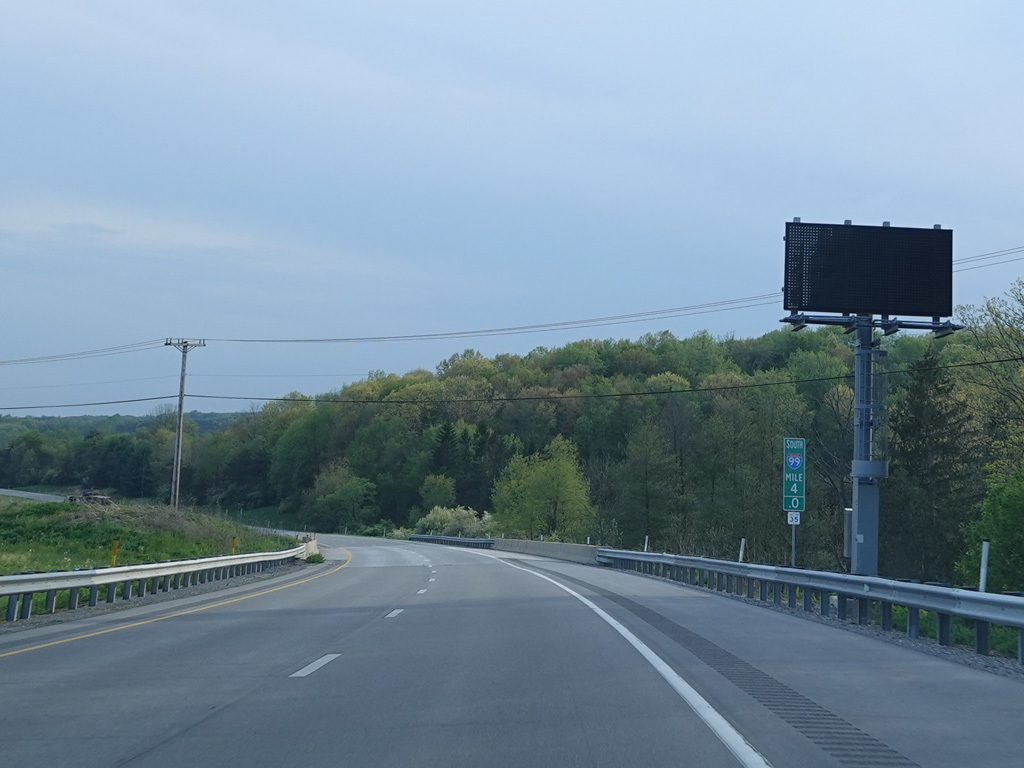 Exit 1 is for the Pennsylvania Turnpike (I-70/I-76). The exit leads to Business US 220, from which there is access to the turnpike. I-99 ends here. Continue straight ahead for US 220 south.