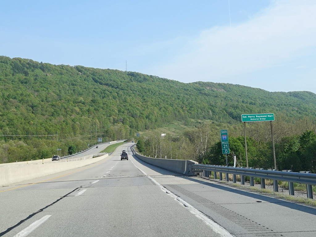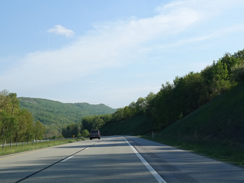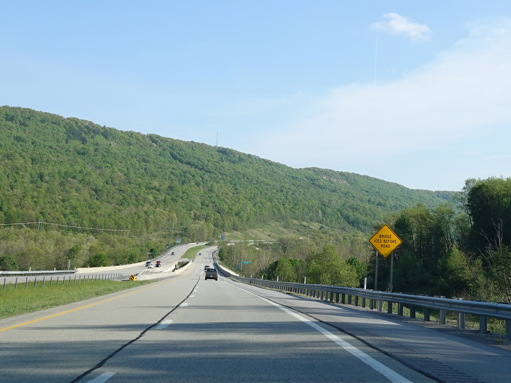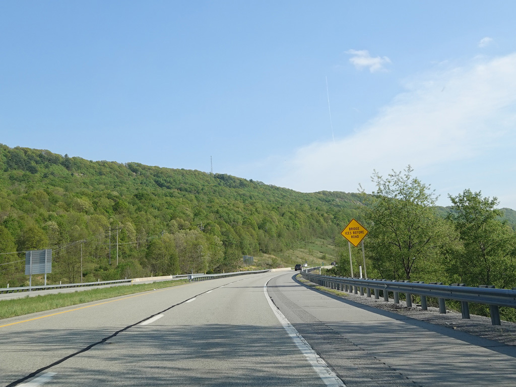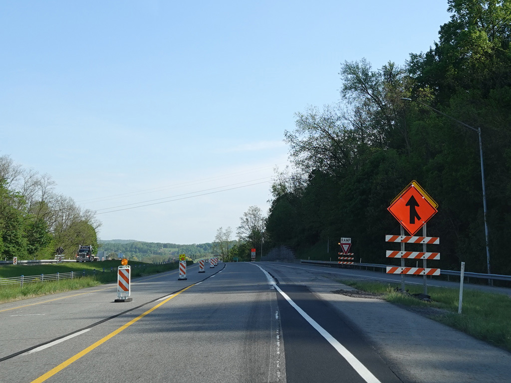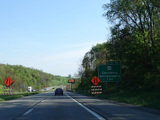 Exit 23 is for Charger Highway (PA 36), Woodbury Pike (PA 164), and Dunnings Highway (PA 164).