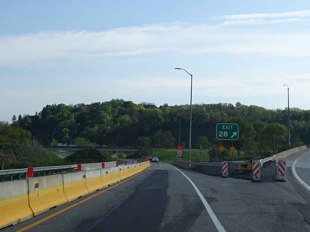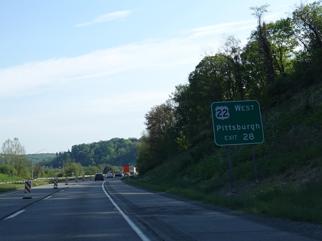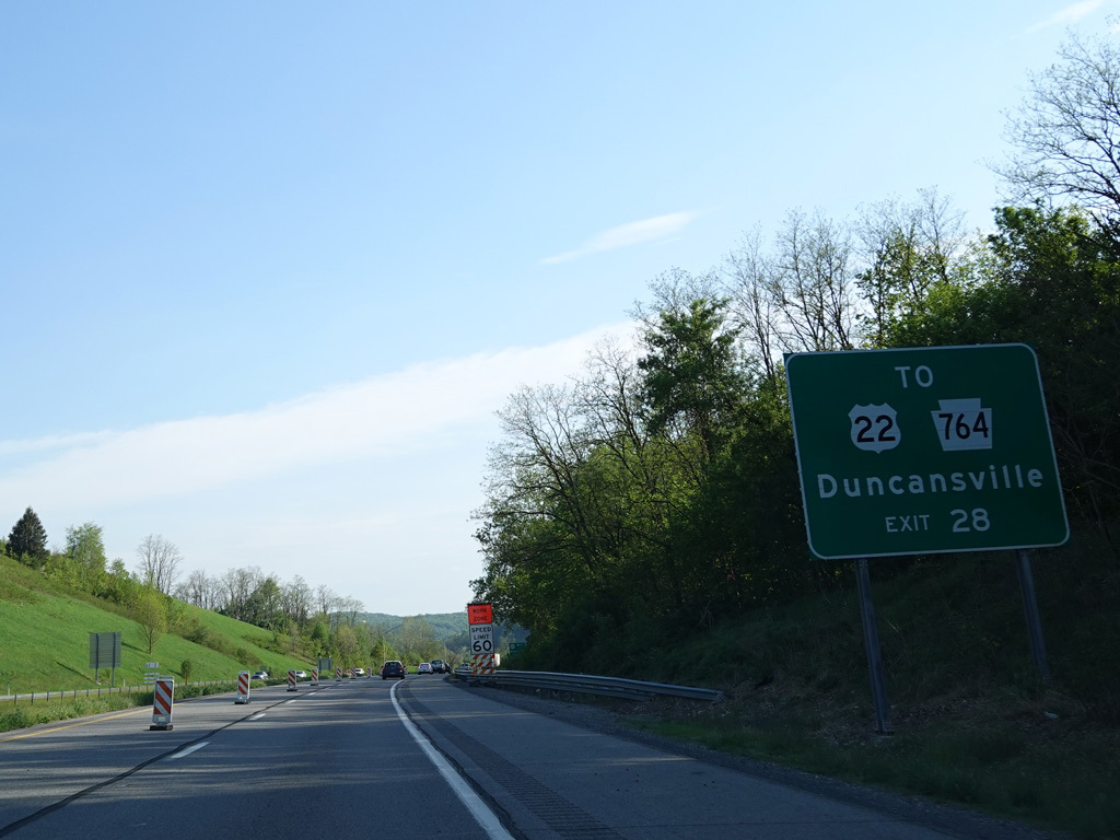 Exit 28 is for US 22. The exit also provides access to PA 764.