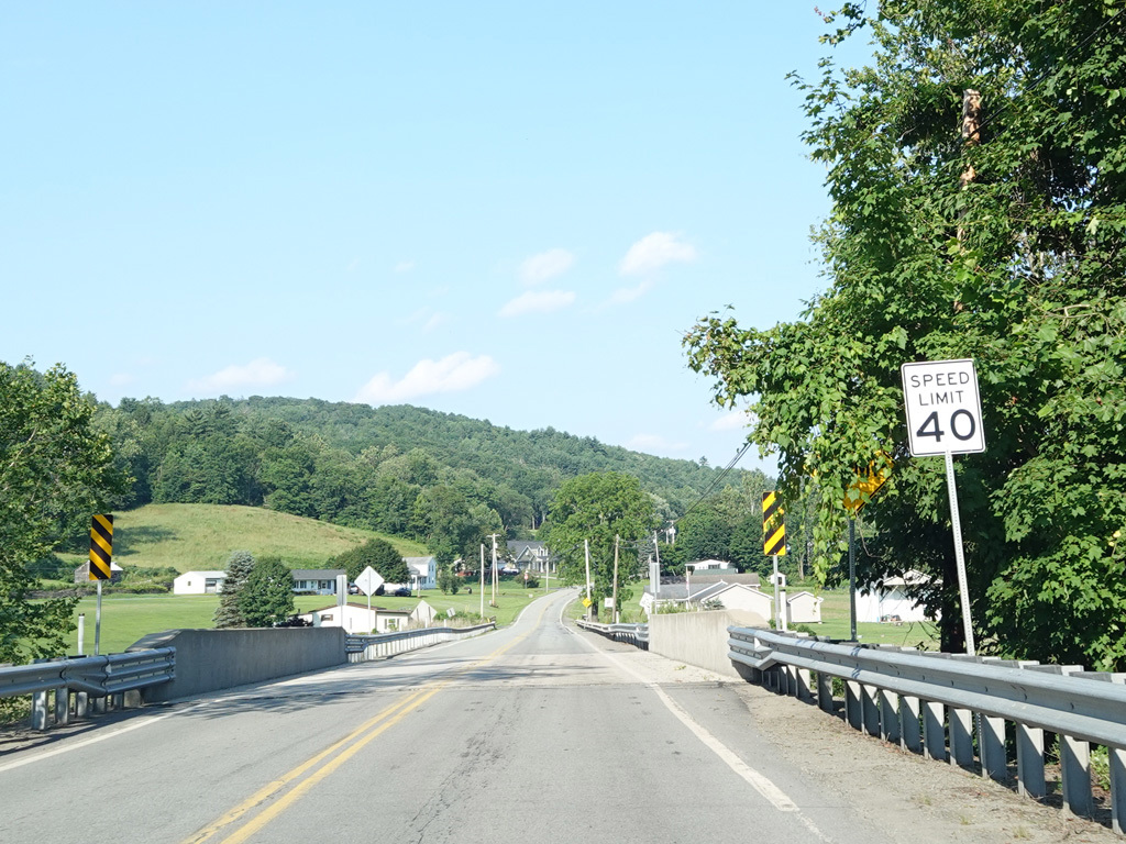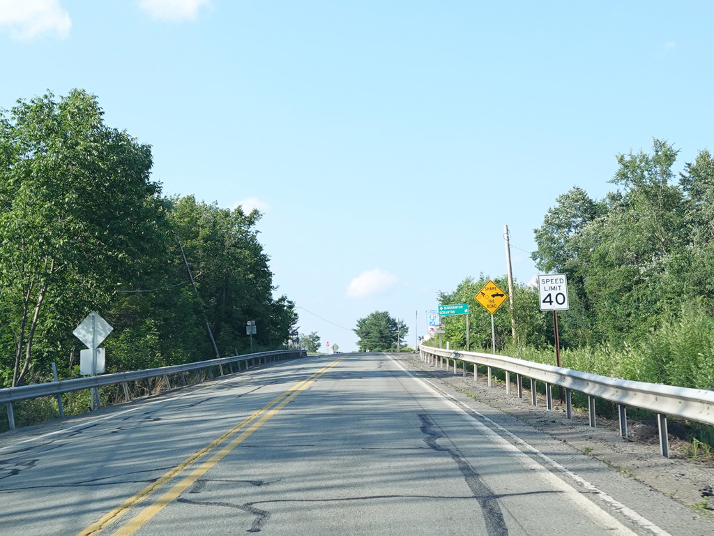 PA 374 begins at PA 92 and runs east as a two-lane undivided road.