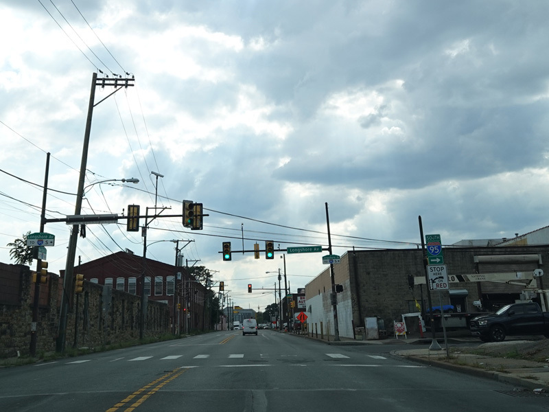 There is a traffic light at Longshore Avenue. Turn right here for access to the Delaware Expressway (I-95) south.