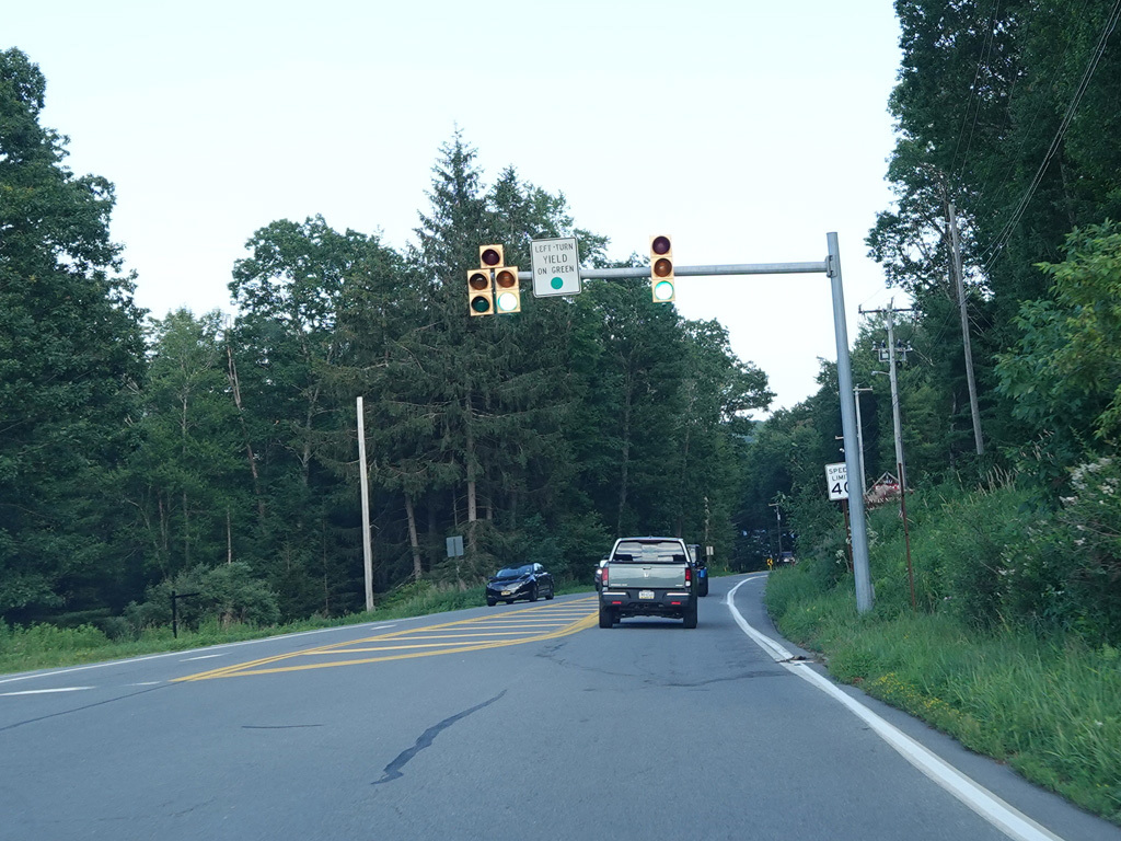 There is a traffic light at US 209. Turn left to go north or right to go south.