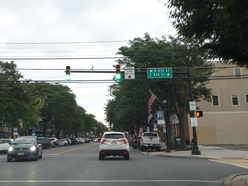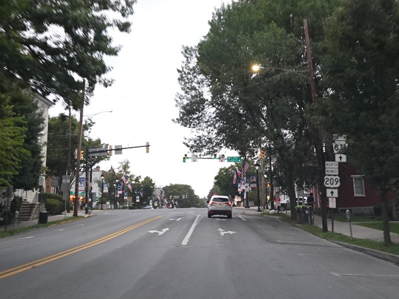 The two routes split at an uncontrolled intersection. Turn left onto North 4th Street for PA 191. Continue straight ahead on Main Street to stay on Business US 209.