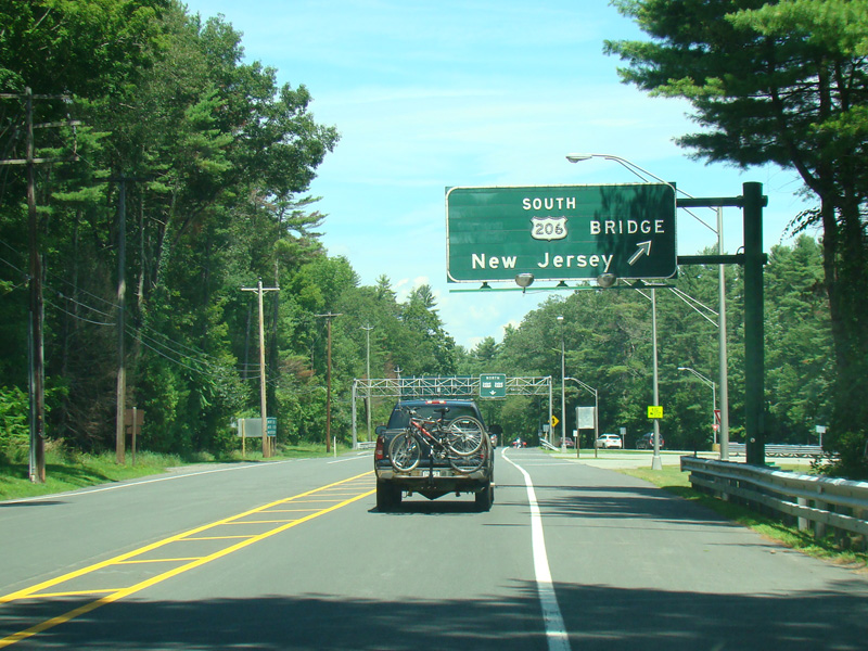 US 206 begins on the right here. The overhead signage indicates that US 206 is multiplexed with US 209 straight ahead, although in reality this is the northern terminus.