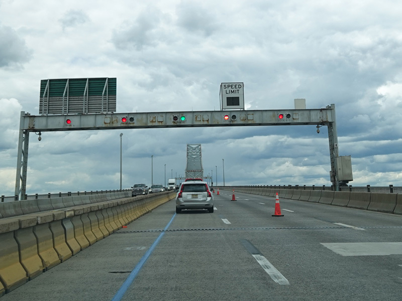 The Commodore Barry Bridge carries US 322 across the Delaware River from New Jersey to Pennsylvania.