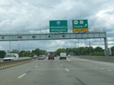 After a couple of exits, US 322 splits off from the Delaware Expressway (I-95) and runs west as a four-lane divided highway. Here, it is called Conchester Highway.