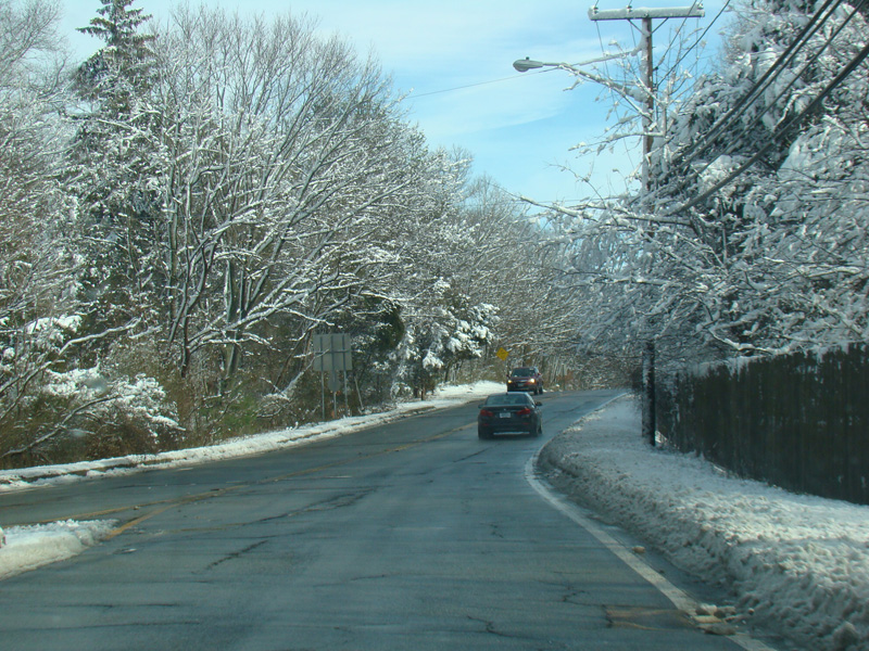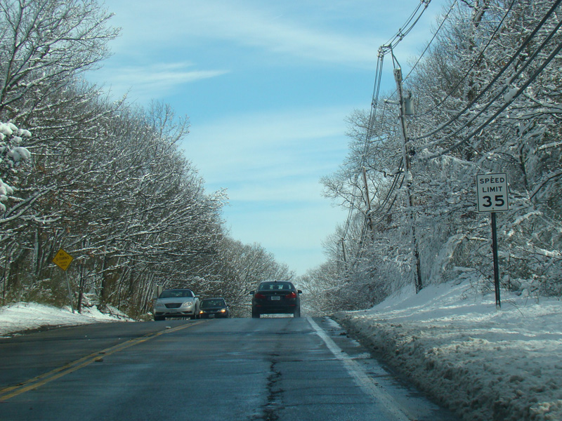 Division Road curves slightly to the south and changes names to become First Avenue. Division Street begins on the left at the point of the name change.