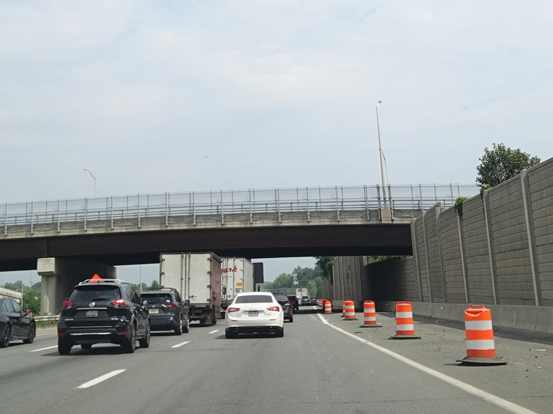 This picture shows the Capital Beltway north at exits 45-44 as it appeared while construction work was in progress to extend the express toll lanes north to the American Legion Memorial Bridge.
