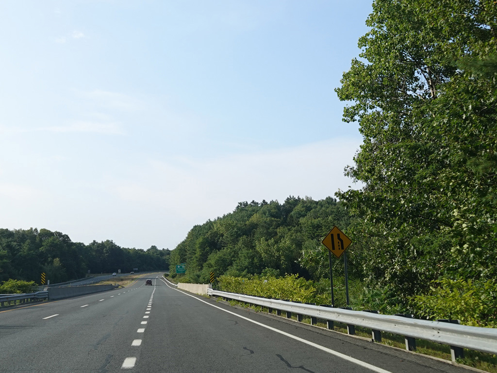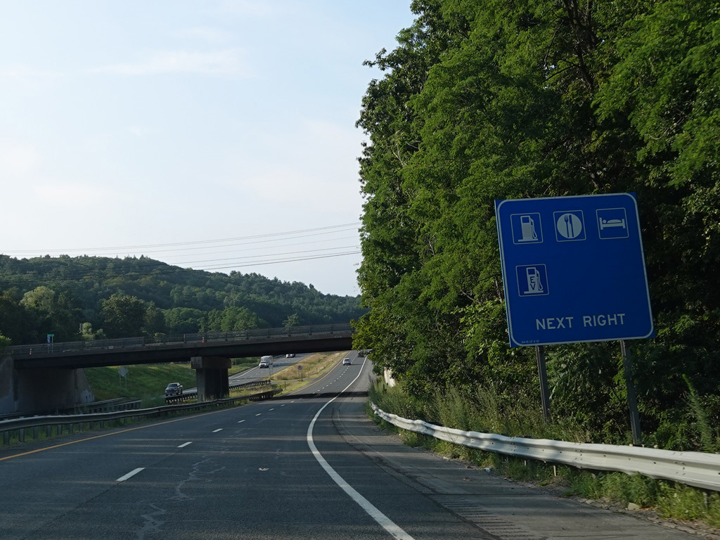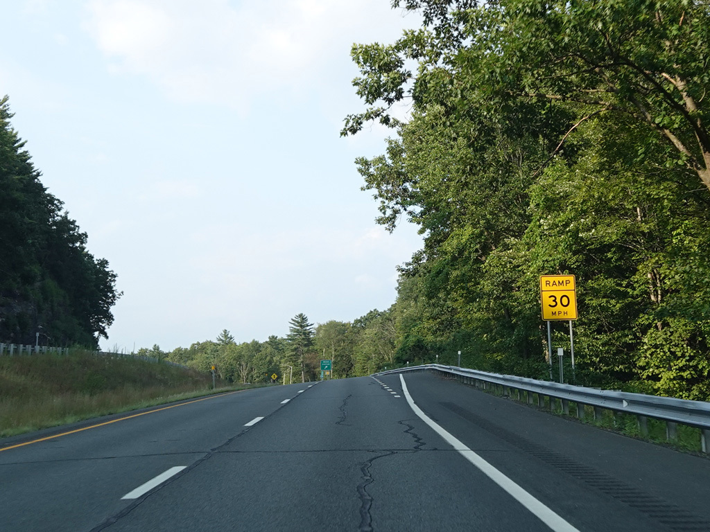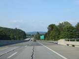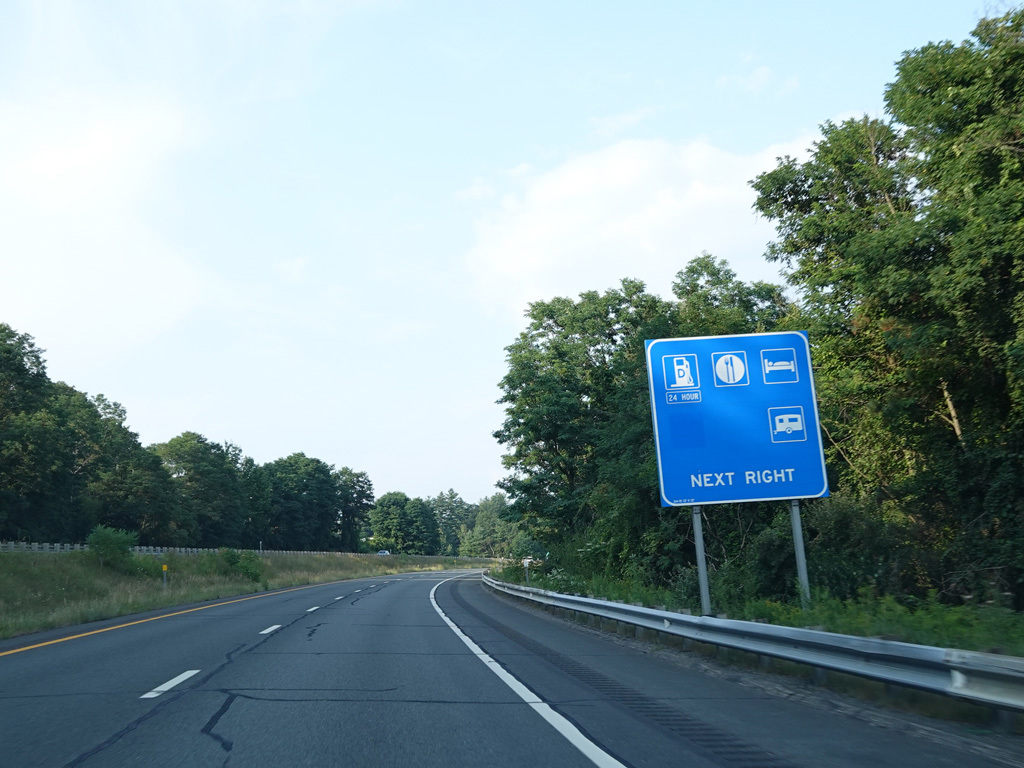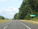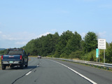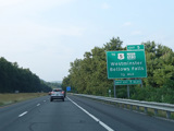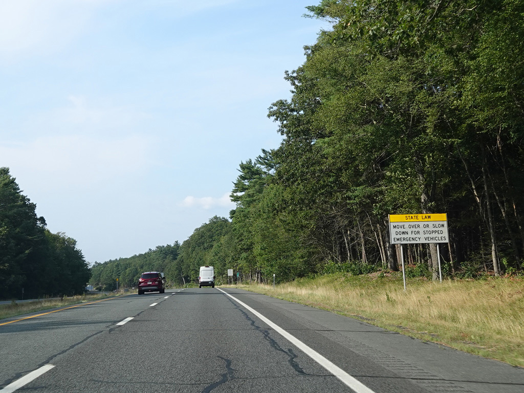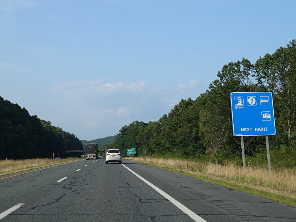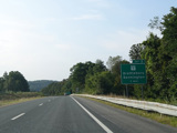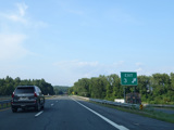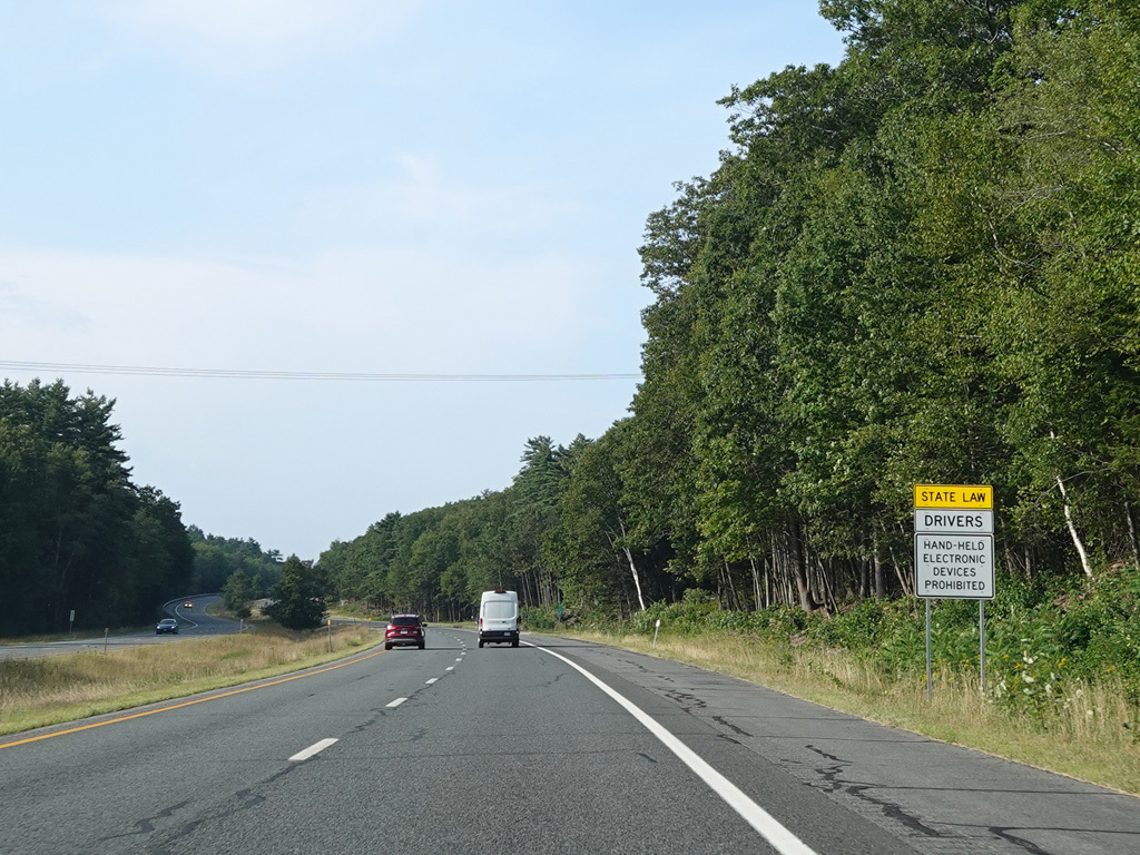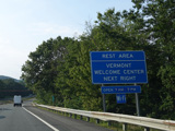 There are no exits for the first few miles in the state. There is signage in this area for various state laws, such as those on seatbelts, drunk driving, and cell phone use.