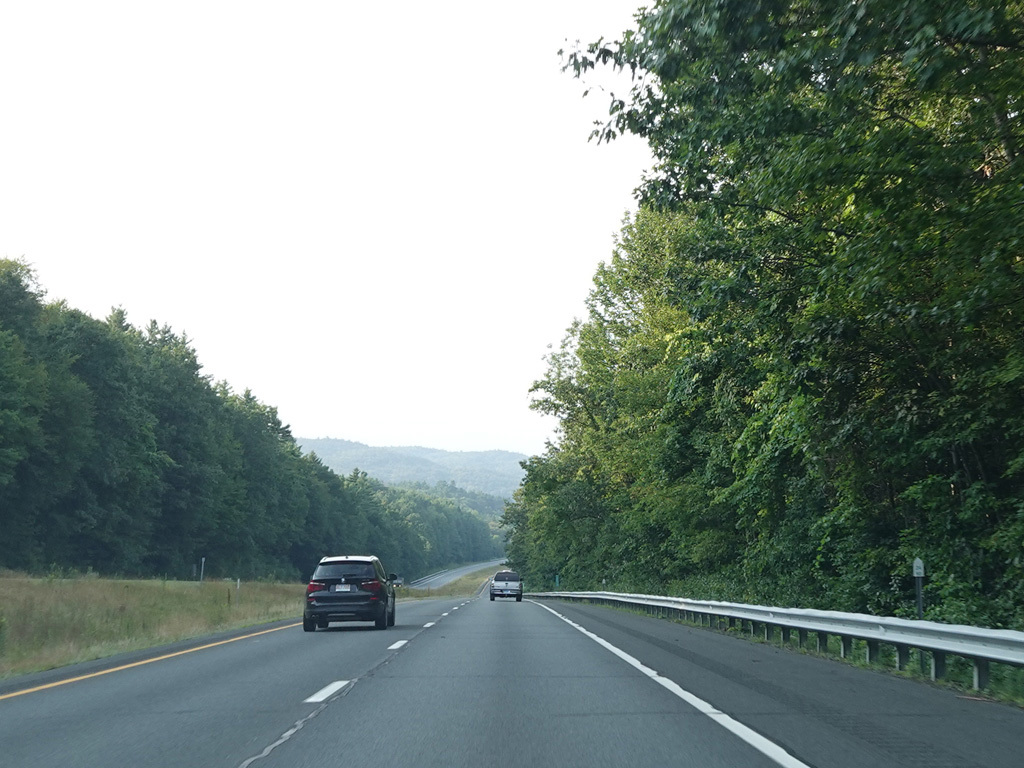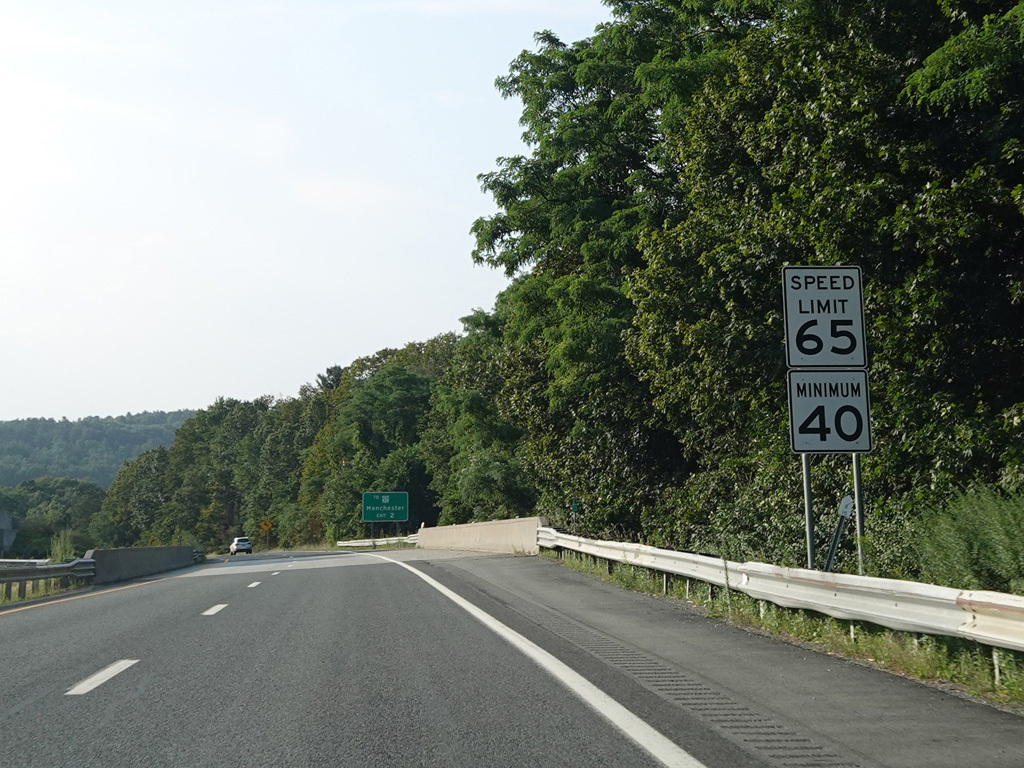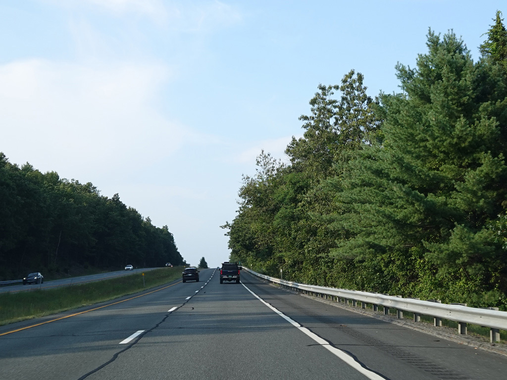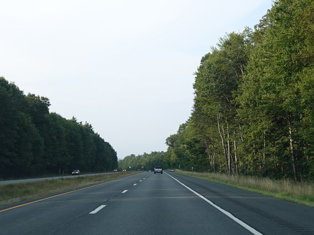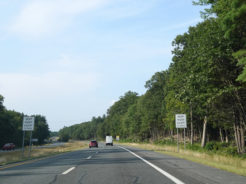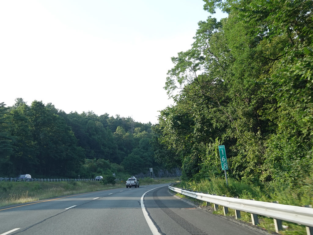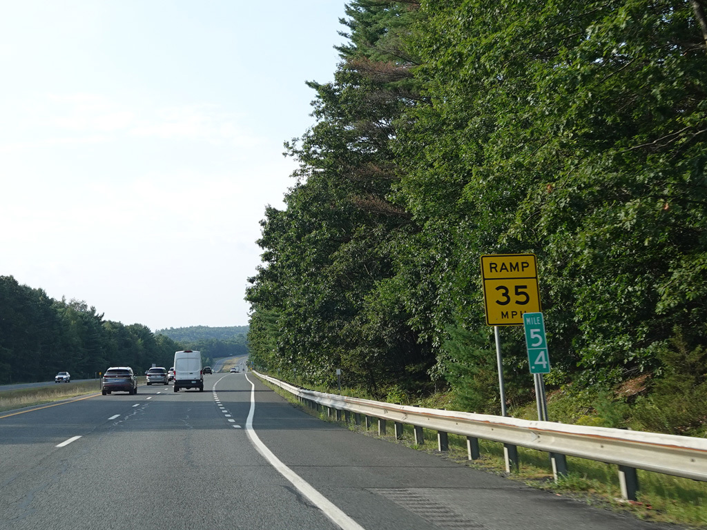 There are no exits for the first few miles in the state. There is signage in this area for various state laws, such as those on seatbelts, drunk driving, and cell phone use.