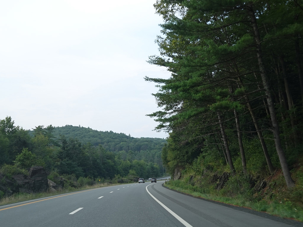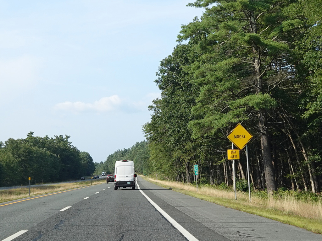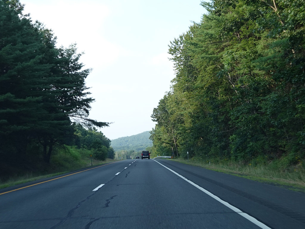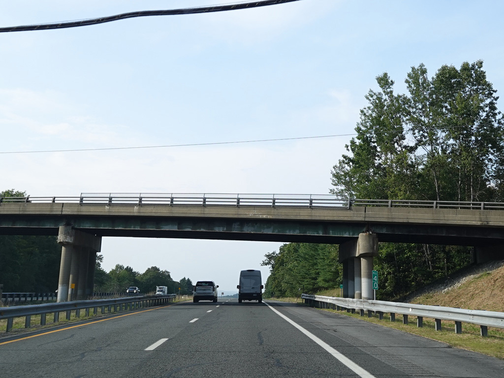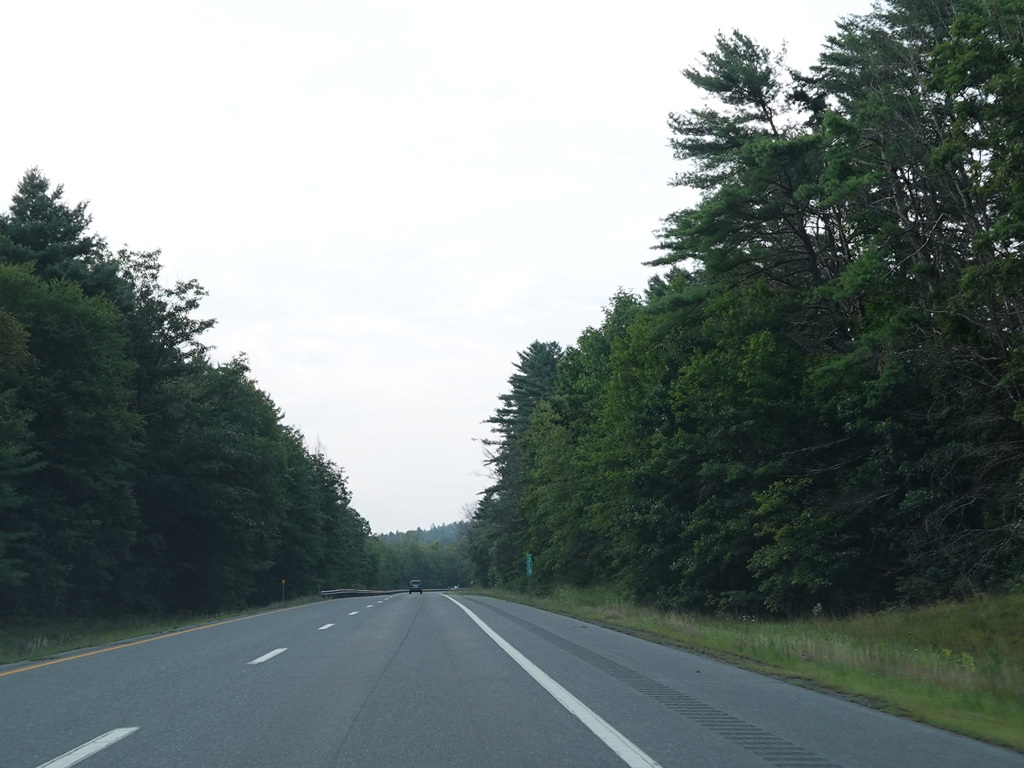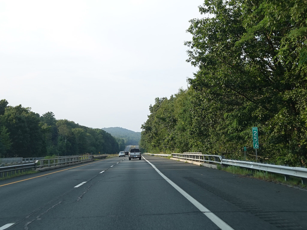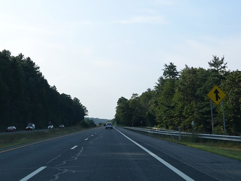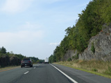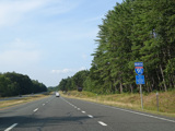 There are no exits for the first few miles in the state. There is signage in this area for various state laws, such as those on seatbelts, drunk driving, and cell phone use.
