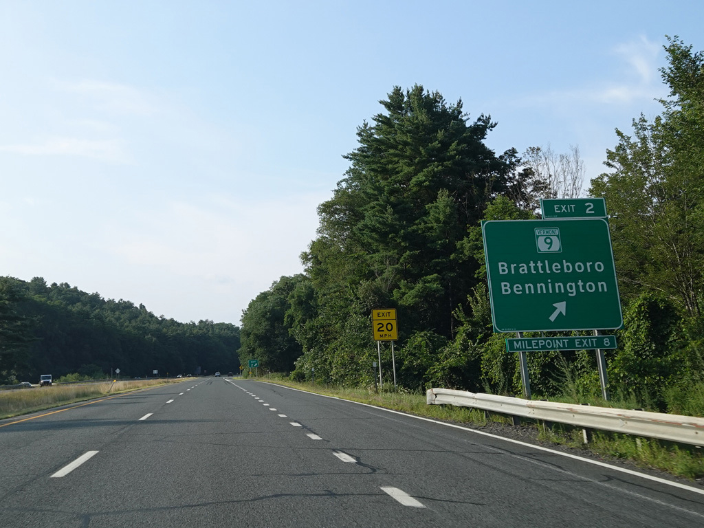 Exit 3 is for Putney Road (US 5) and Chesterfield Road (VT 9) east.