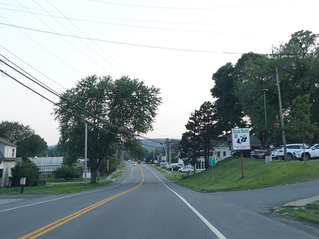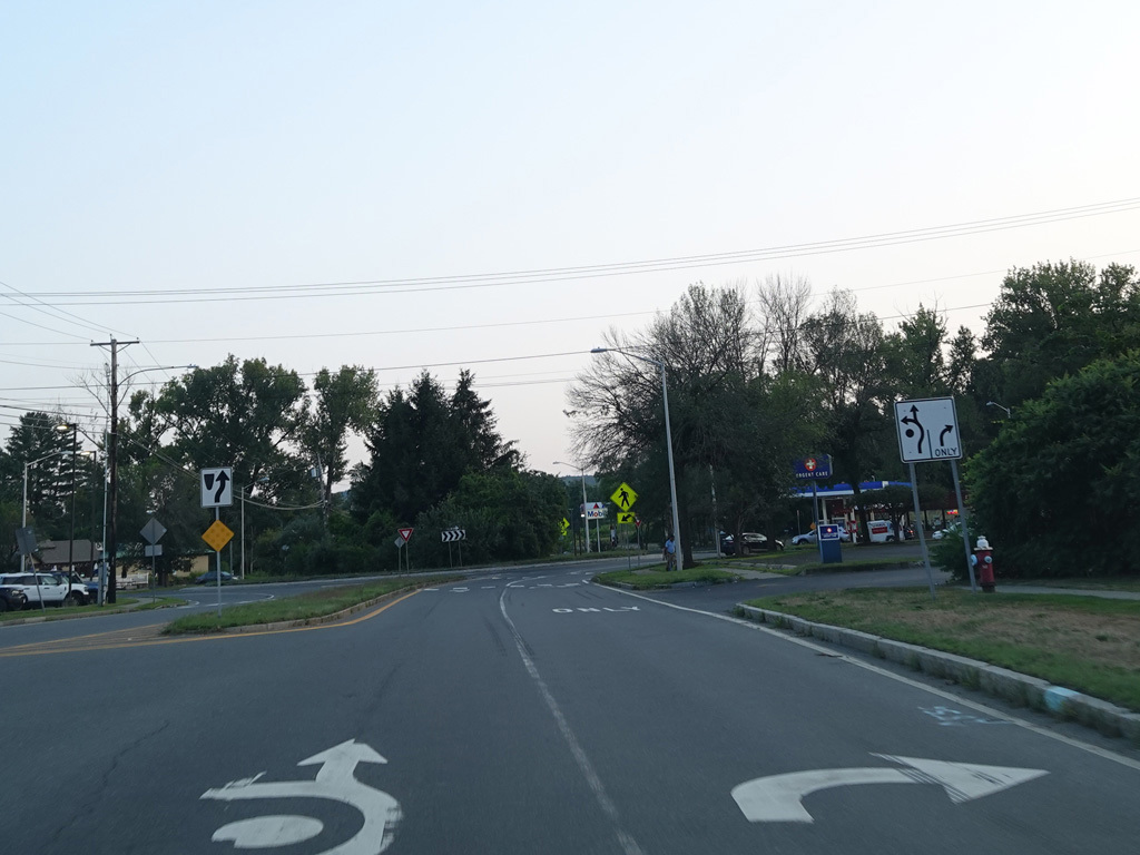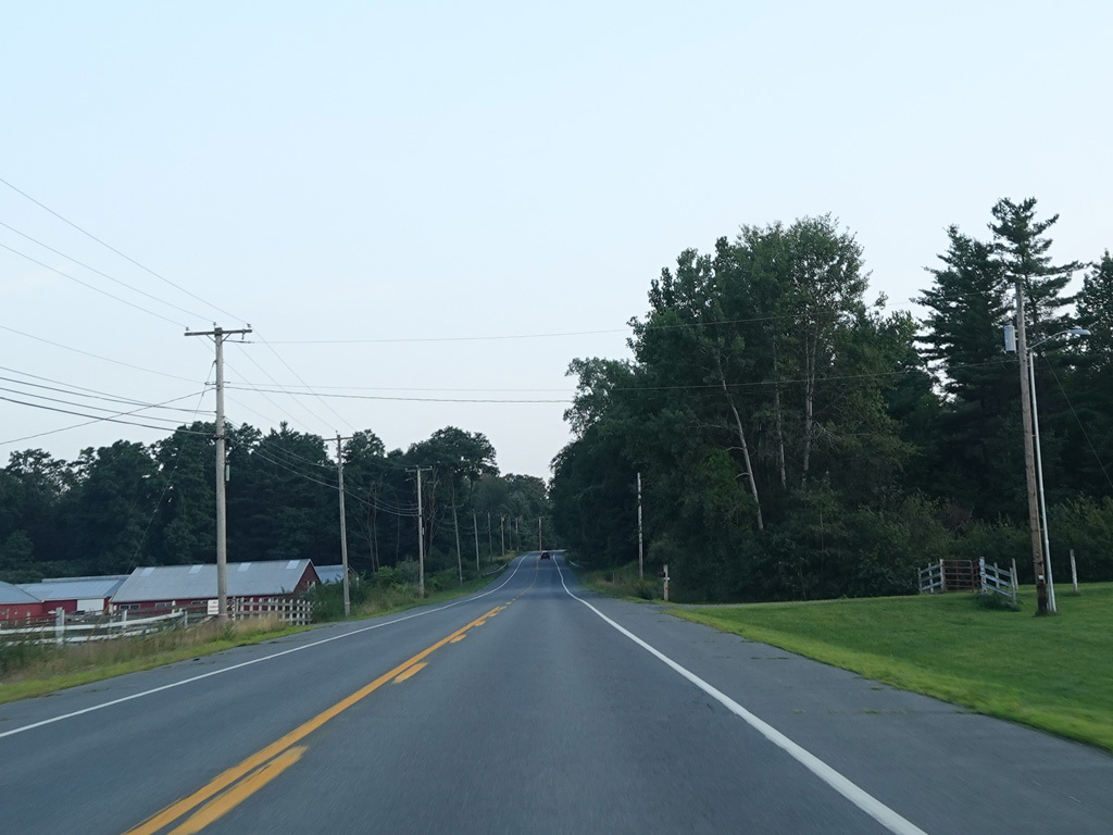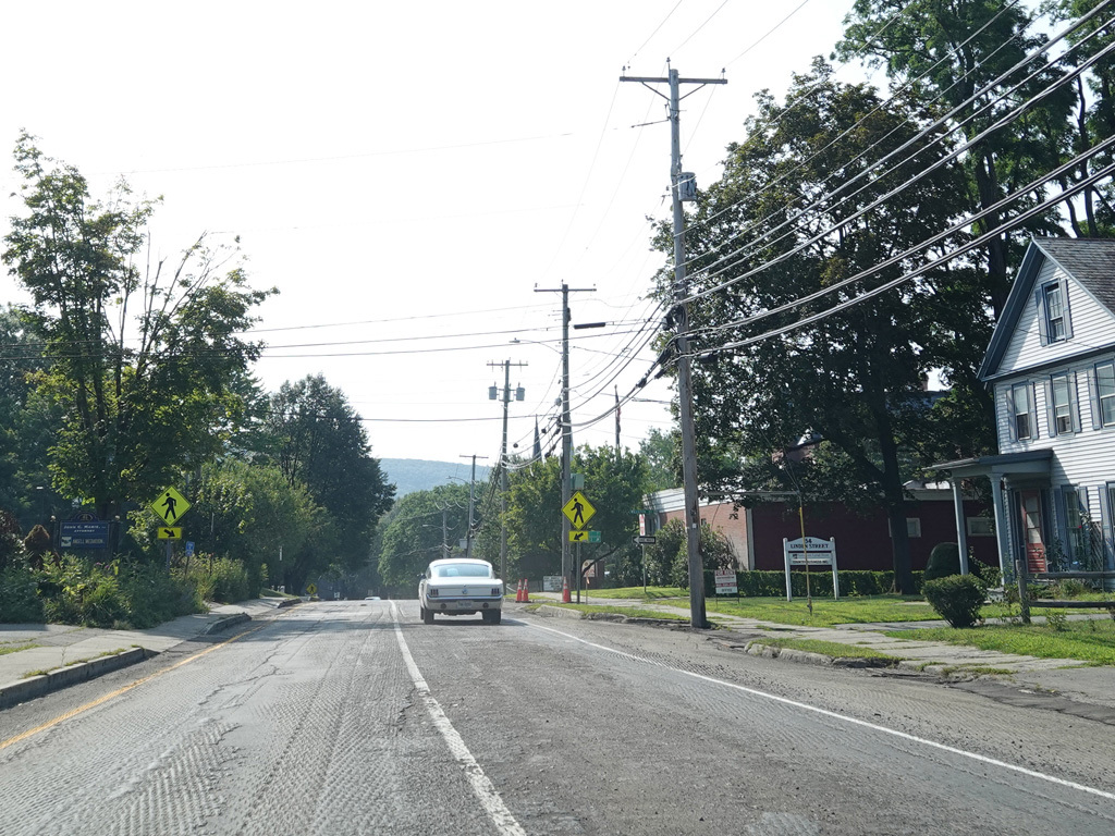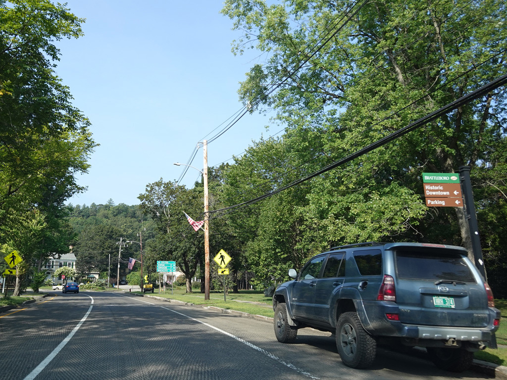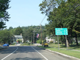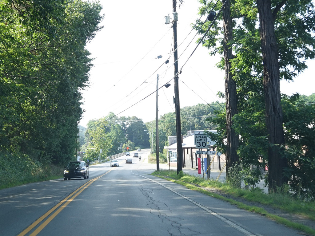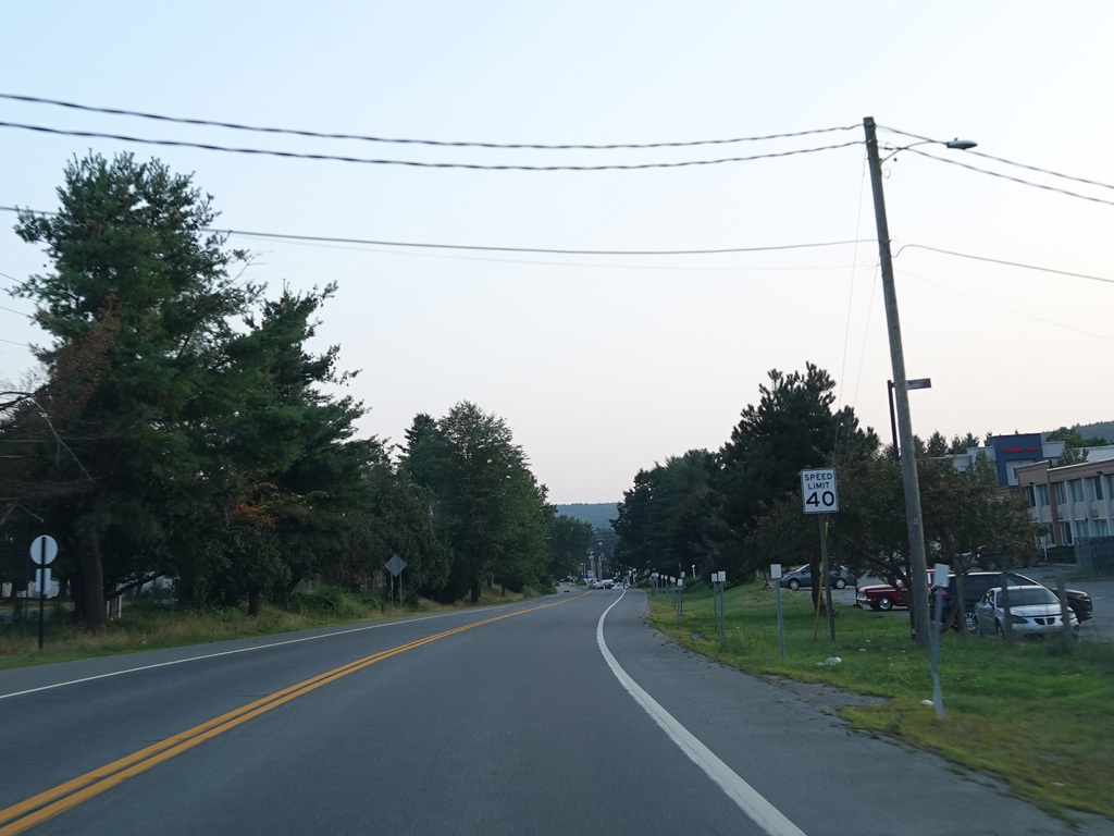 Coming into Putney, Bellows Falls Road changes names to become Main Street. The speed limit drops to 40 MPH and then to 30 MPH.